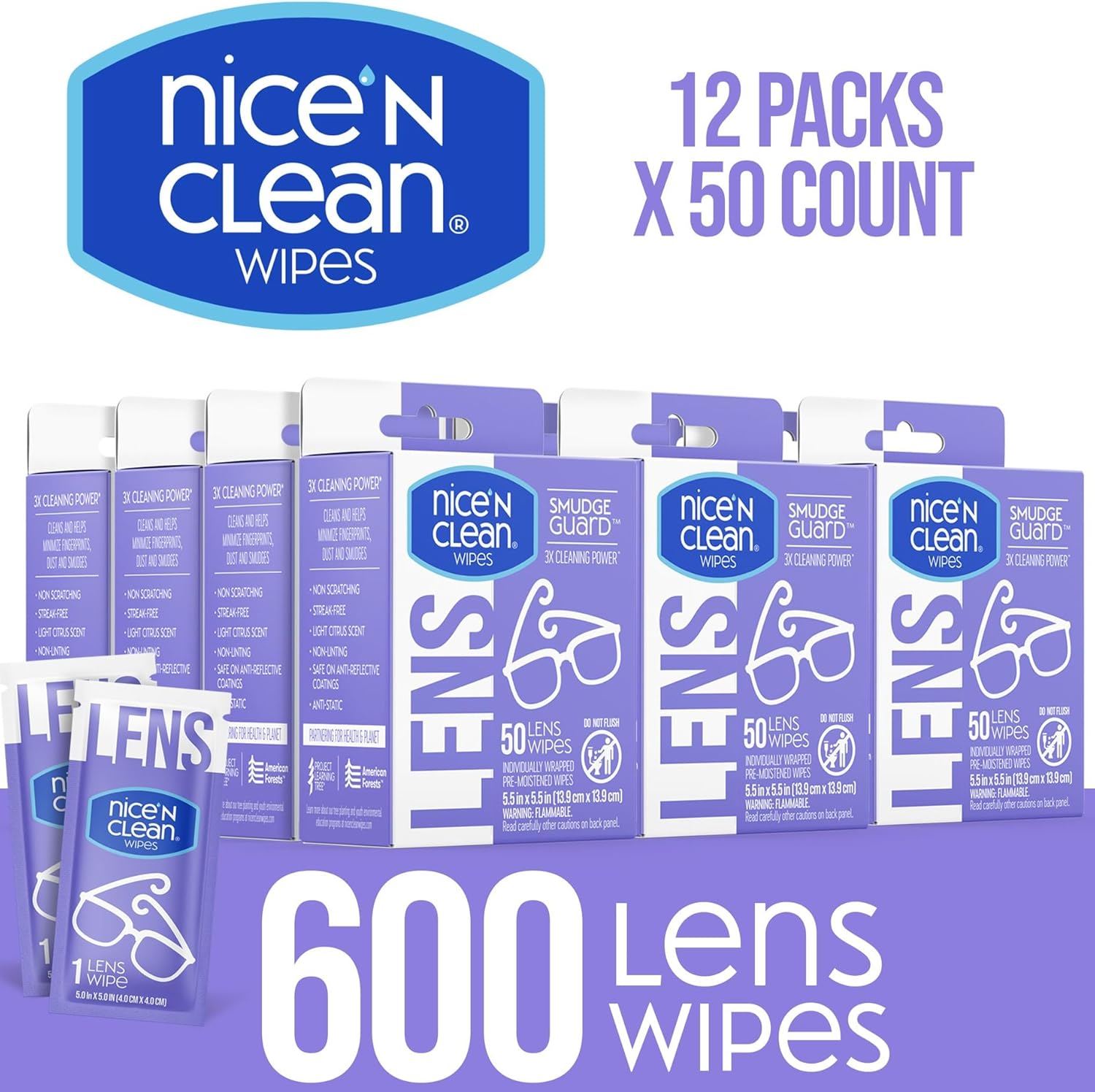 Nice 'N CLEAN SmudgeGuard Lens Wipes (600 Total Wipes) | Individually-Wrapped, Pre-Moistened, Ammonia-Free Lenses Wipes | Lens Cleaning Wipes for Eyeglasses, Camera Lens, Goggles, Sunglasses