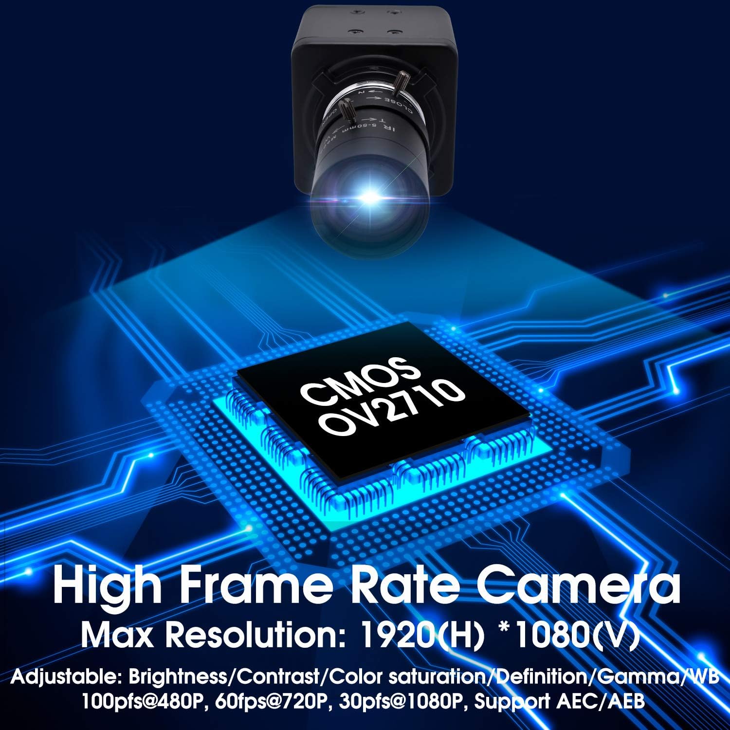 - High Frame Rate: USB camera with high frame rate 1080P 30fps per second, 720P 60fps per second, VGA/48P 100fps per second. Deliver smooth pictures while catching up moving objects. Great for video calling, streaming, studio recording and for Raspberry Pi.High speed USB 2.0 webcam output format support MJPEG/YUY2