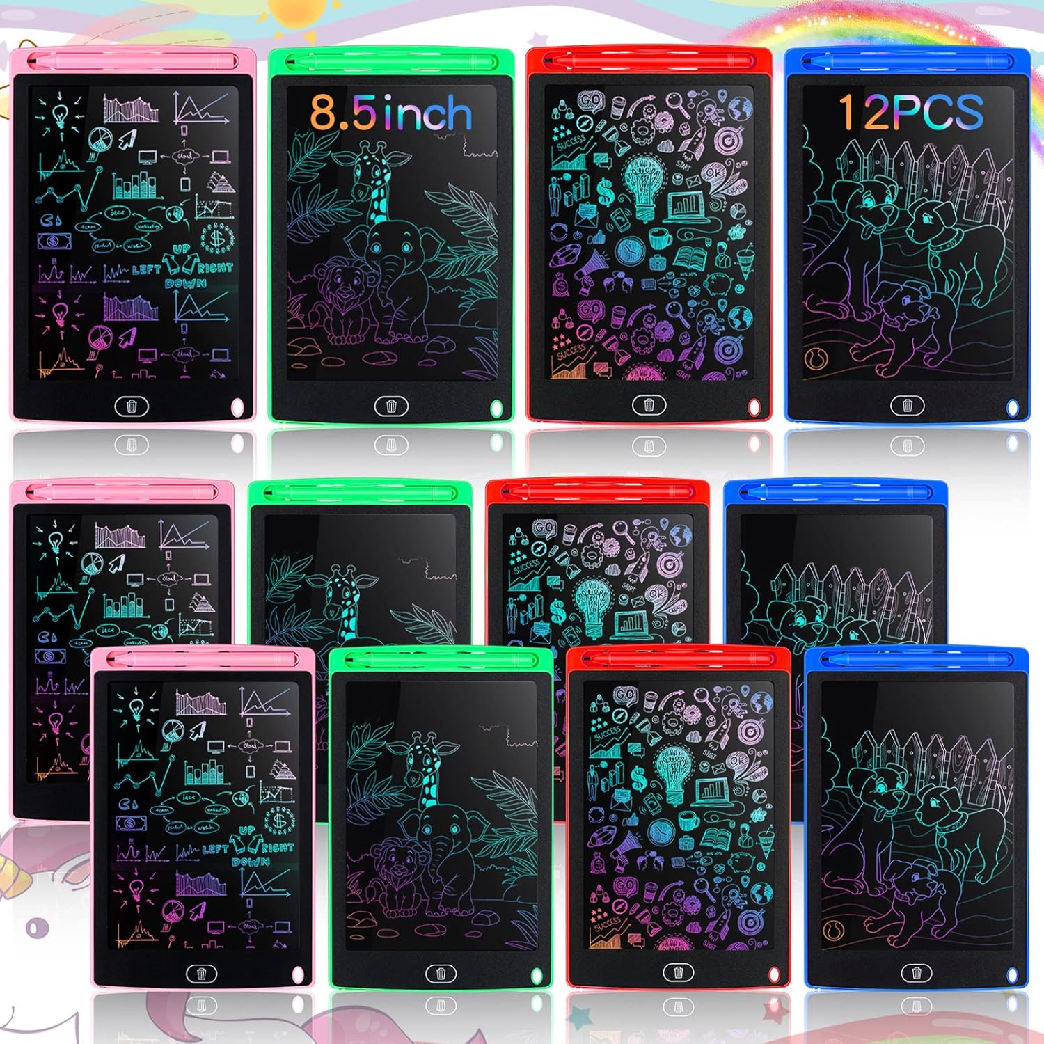 Tinlade 12 Pack LCD Writing Drawing Tablets 8.5 Inch Bulk Colorful Doodle Board Erasable Electronic Painting Drawing Pads Learning Toy Gifts for Kids Christmas School(Pink, Green, Red, Blue)