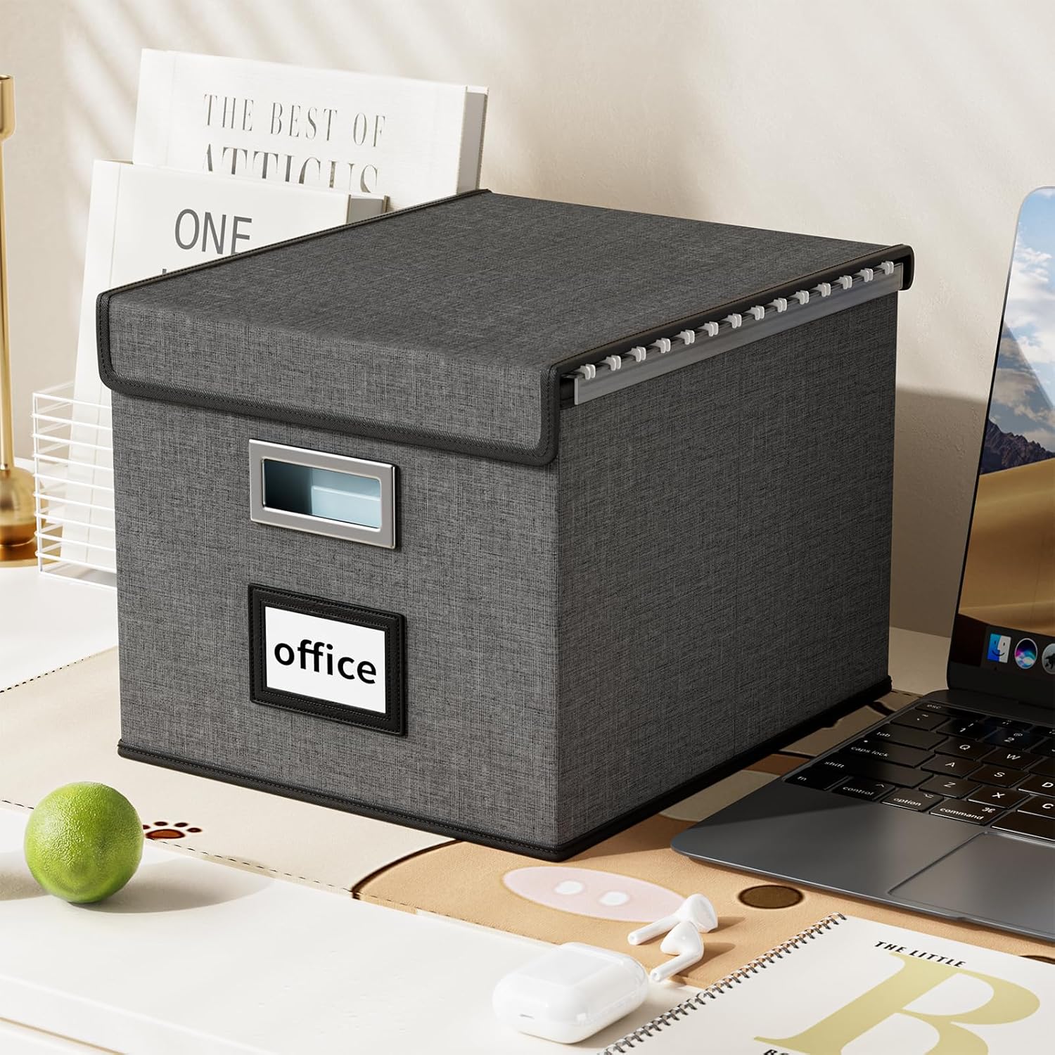 - Collapsible Multifunctional Filing Storage Organizer - The outer box with linen fabric can be dustproof, inside and the bottom support is made of thickened cardboard, which is environmentally friendly and not easily deformed. The cover with Velcro not only allows us to cover the file box easily, but provides more storage space for the file. It also acts as a small filing cabinet for tax documents, legal files and other documents storage. When we are not using it, we can fold it up to save space.