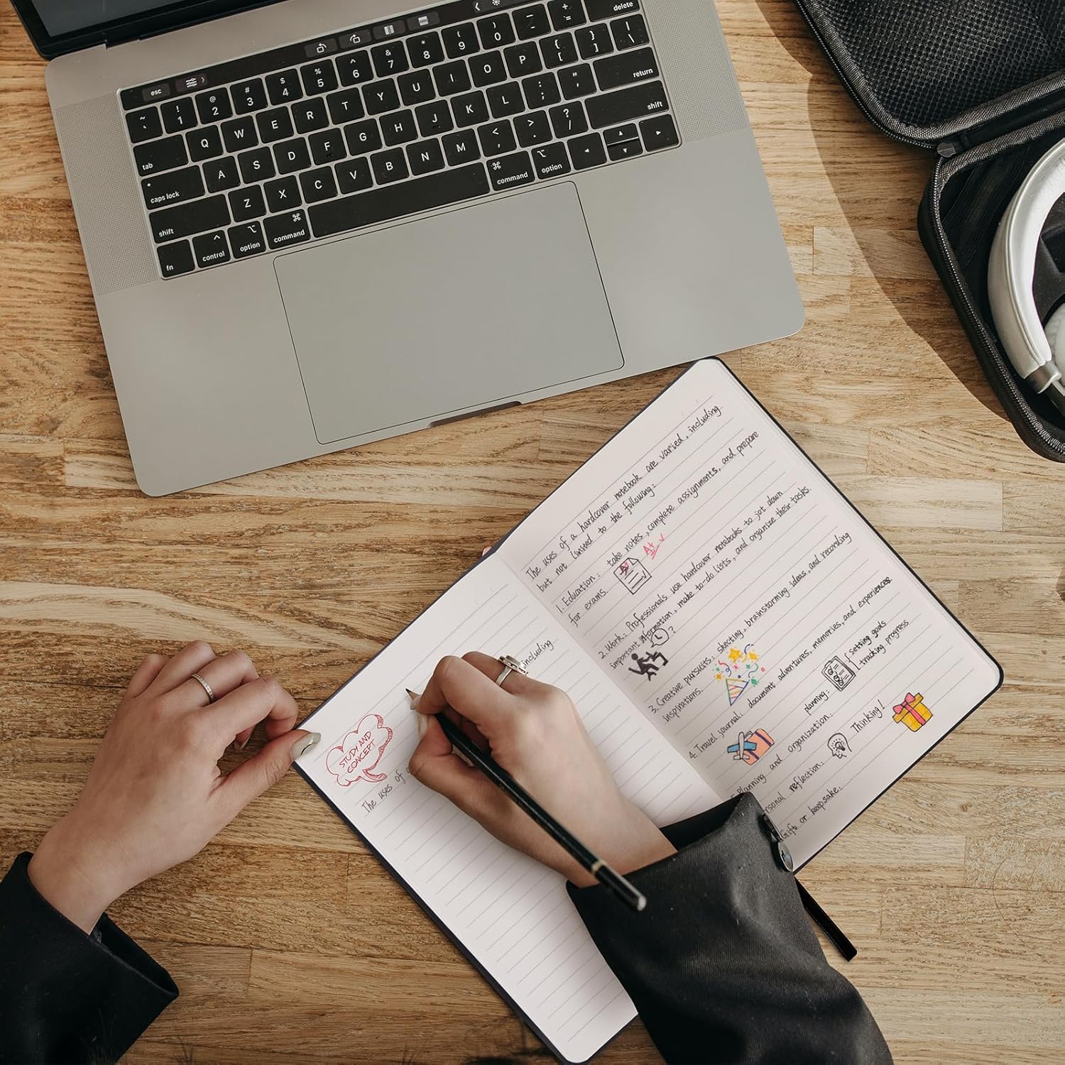 - 【Hardcover Journaling Notebook】Featuring soft-touch vegan leather cover for writing durability. Perfect for work, school, or home.
