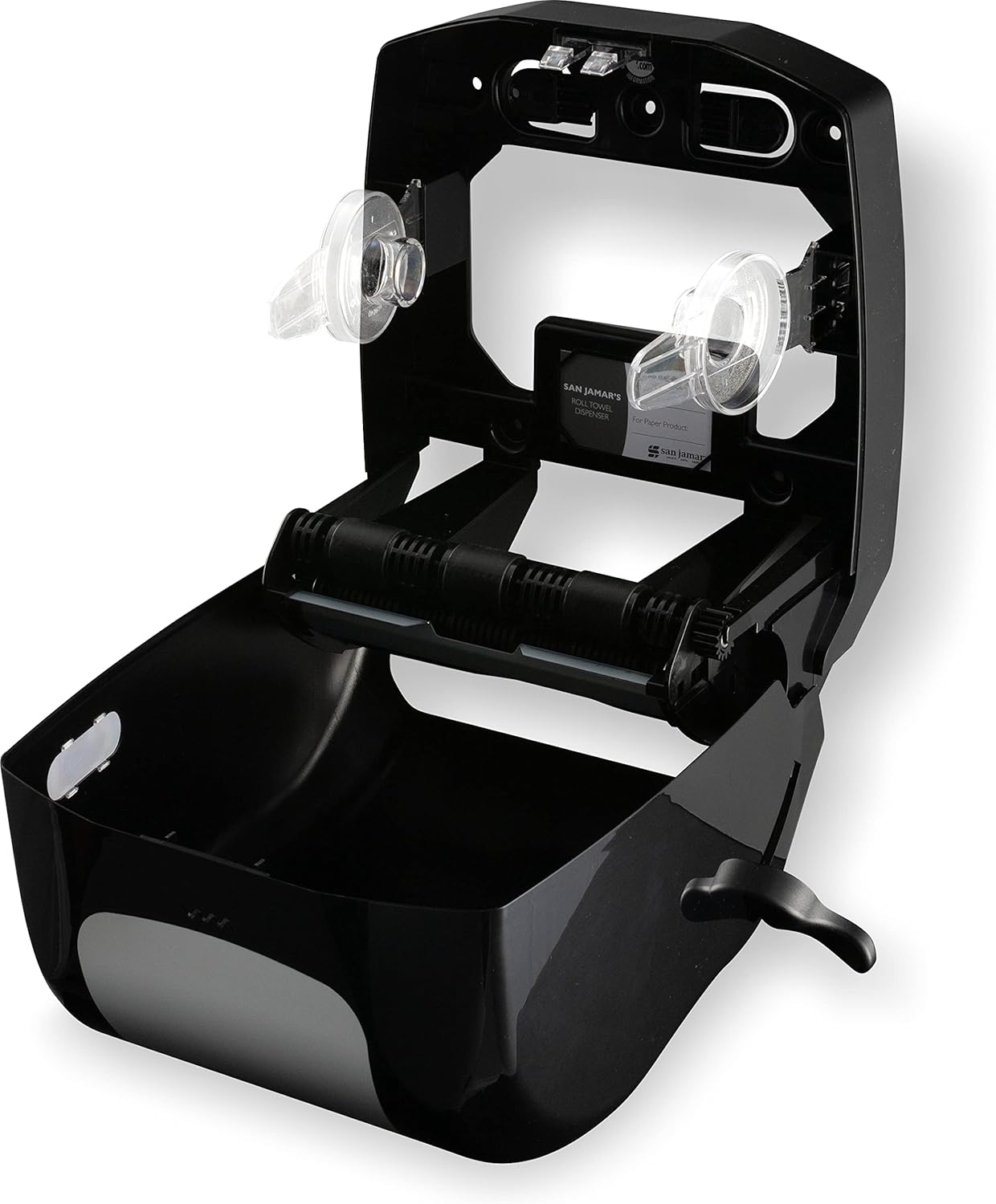 San Jamar Summit Lever Paper Towel Roll Dispenser, Wall Mounted Manual Dispensing, 1.5" Core for Bathrooms, Kitchens, and Restaurants, Plastic (ABS), Black and Stainless Steel