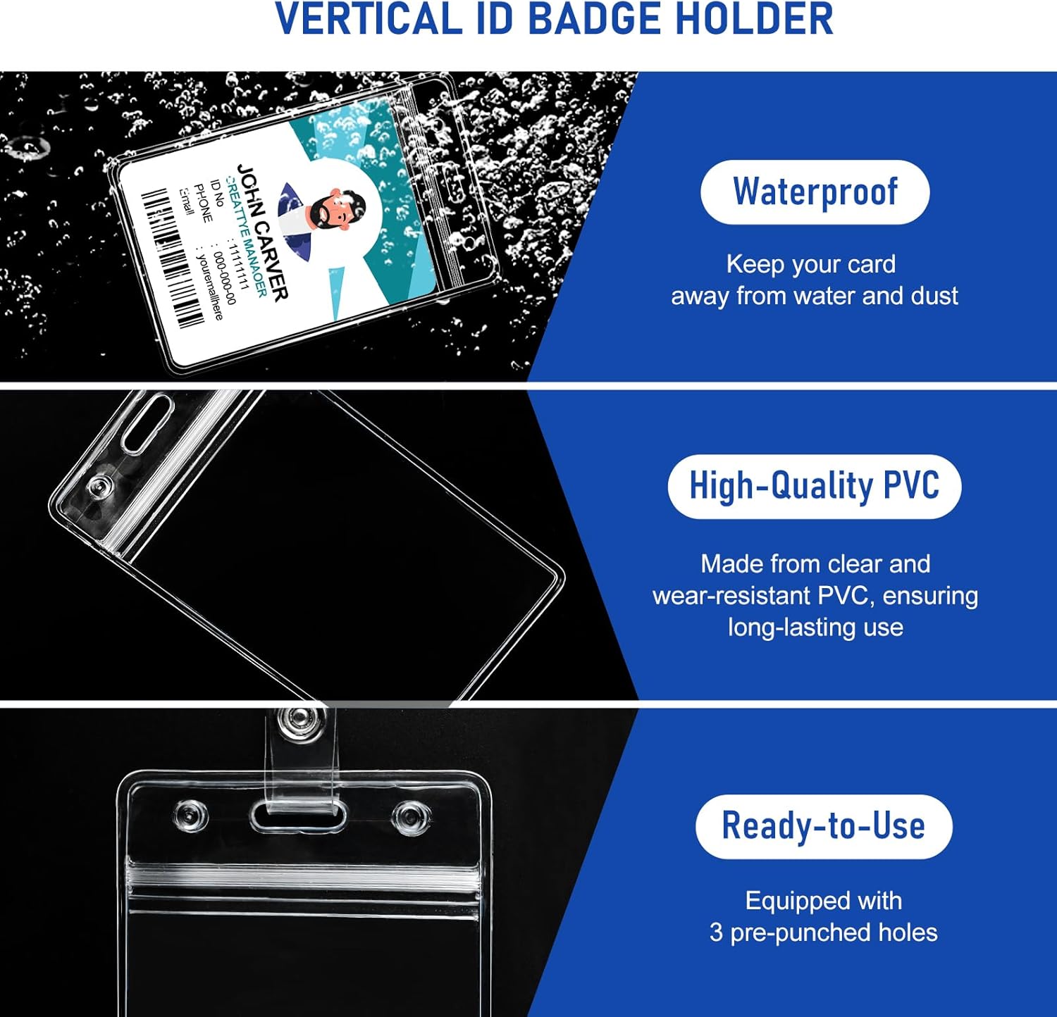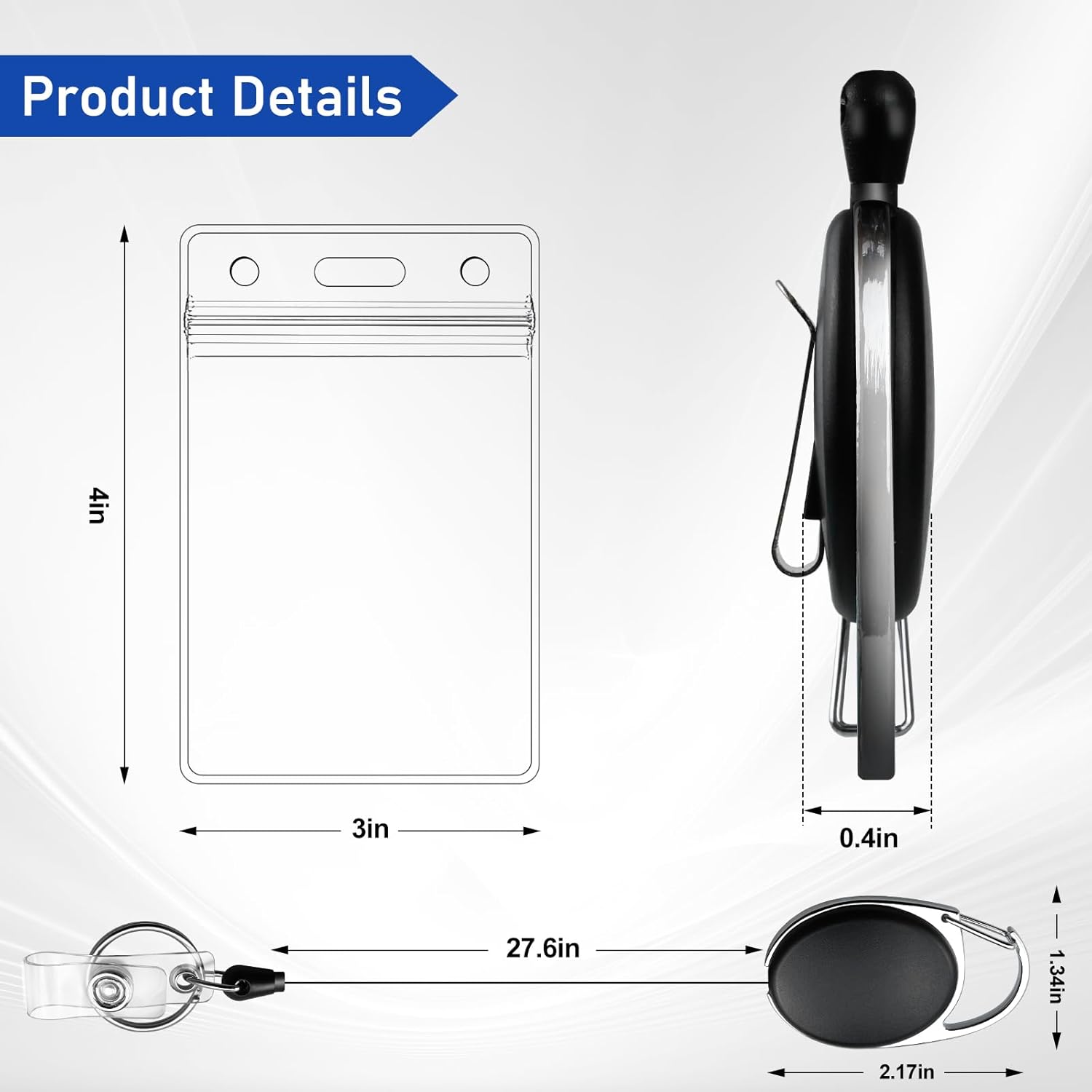 - Practical Set: Come with 10pcs heavy duty retractable badge reels and 10pcs 4×3 inches clear waterproof vertical ID badge holders