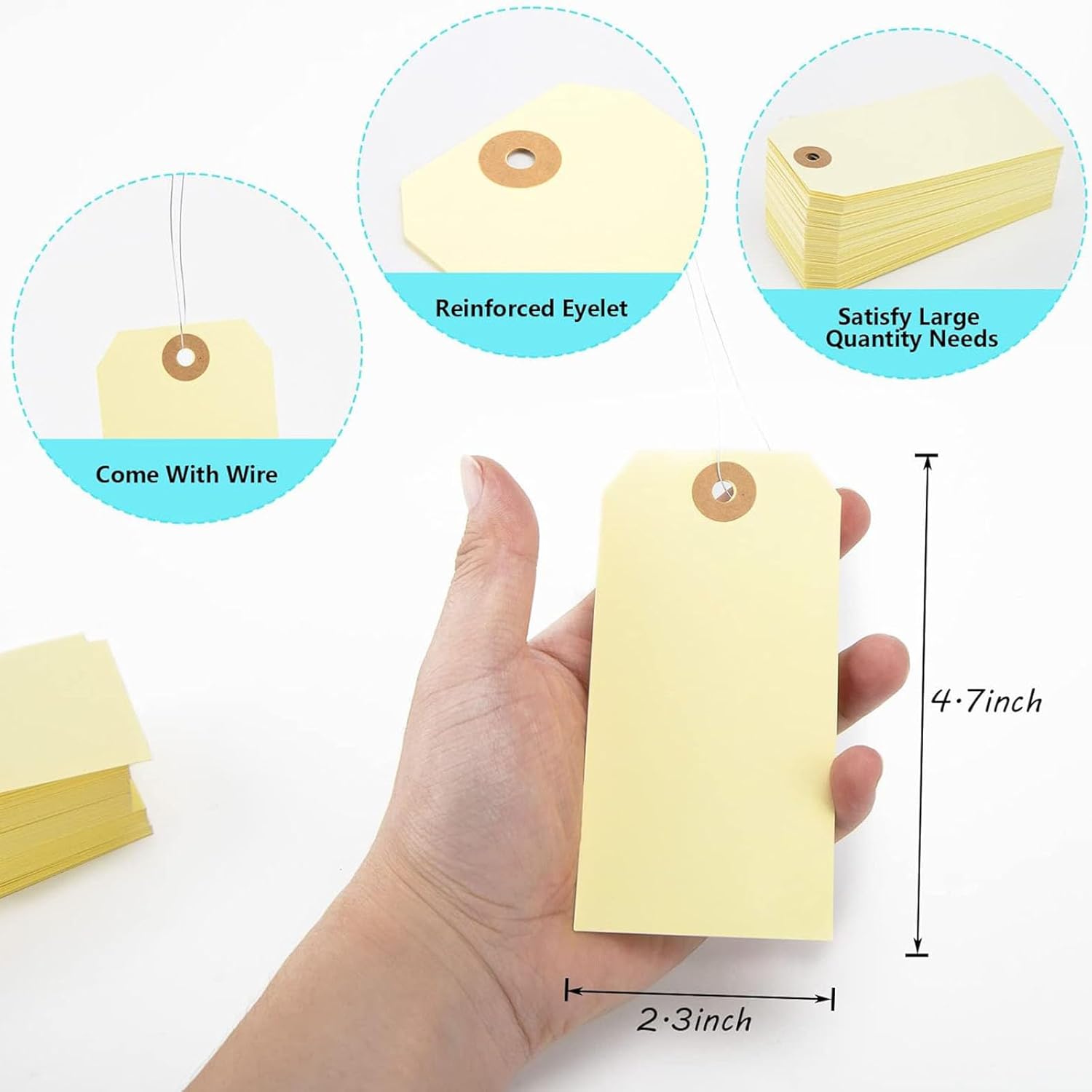 - What You Will Get: You will get 120 yellow kraft paper tags and 120 metal wires. The size of each manila paper tag is 2.3 × 4.7 inch