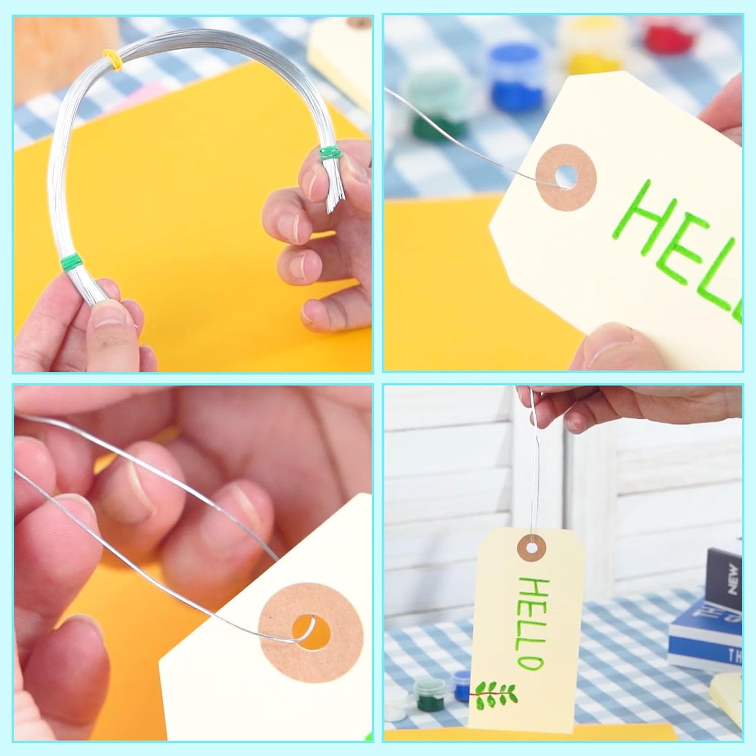 - Reinforced Eyelets: Each kraft paper tag features a reinforced eyelet, designed to accommodate metal wire while preventing tearing. The area around the eyelet is reinforced with three layers of paper for added durability. Compared to normal strings, the metal wires included with these kraft paper shipping labels offer superior strength and reliability