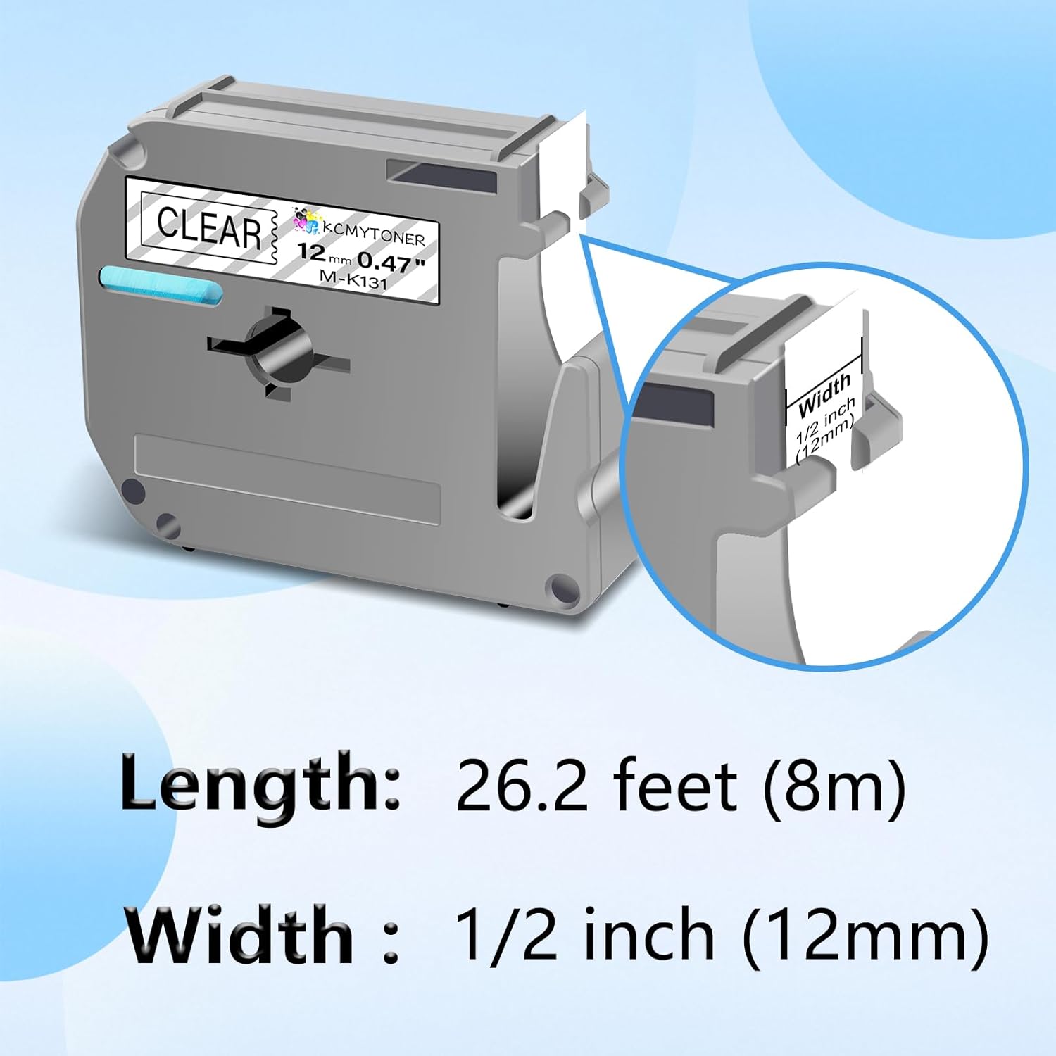 - Package includes: 2 pack compatible for brother p-touch mk131 m131 m-k131 m-k131s non-laminated label maker tape. Color: black ink on clear tape. Width: 1/2 inch (12mm), length: 26.2 feet (8m).