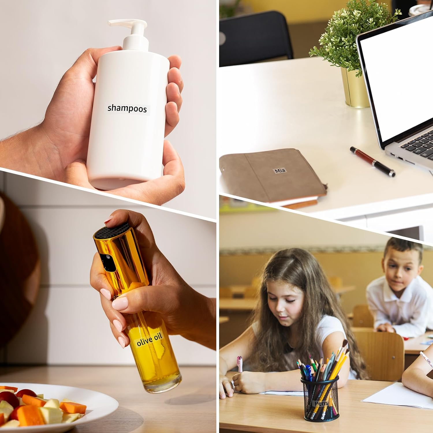 - Non-Laminated durable labels: water-resistant, fade-resistant, abrasion-resistant, chemical-resistant, temperature-resistant. They are an ideal solution for labeling tasks including files, folders, classify files, shelves, kitchen, books, supply cabinets, accessories, etc.