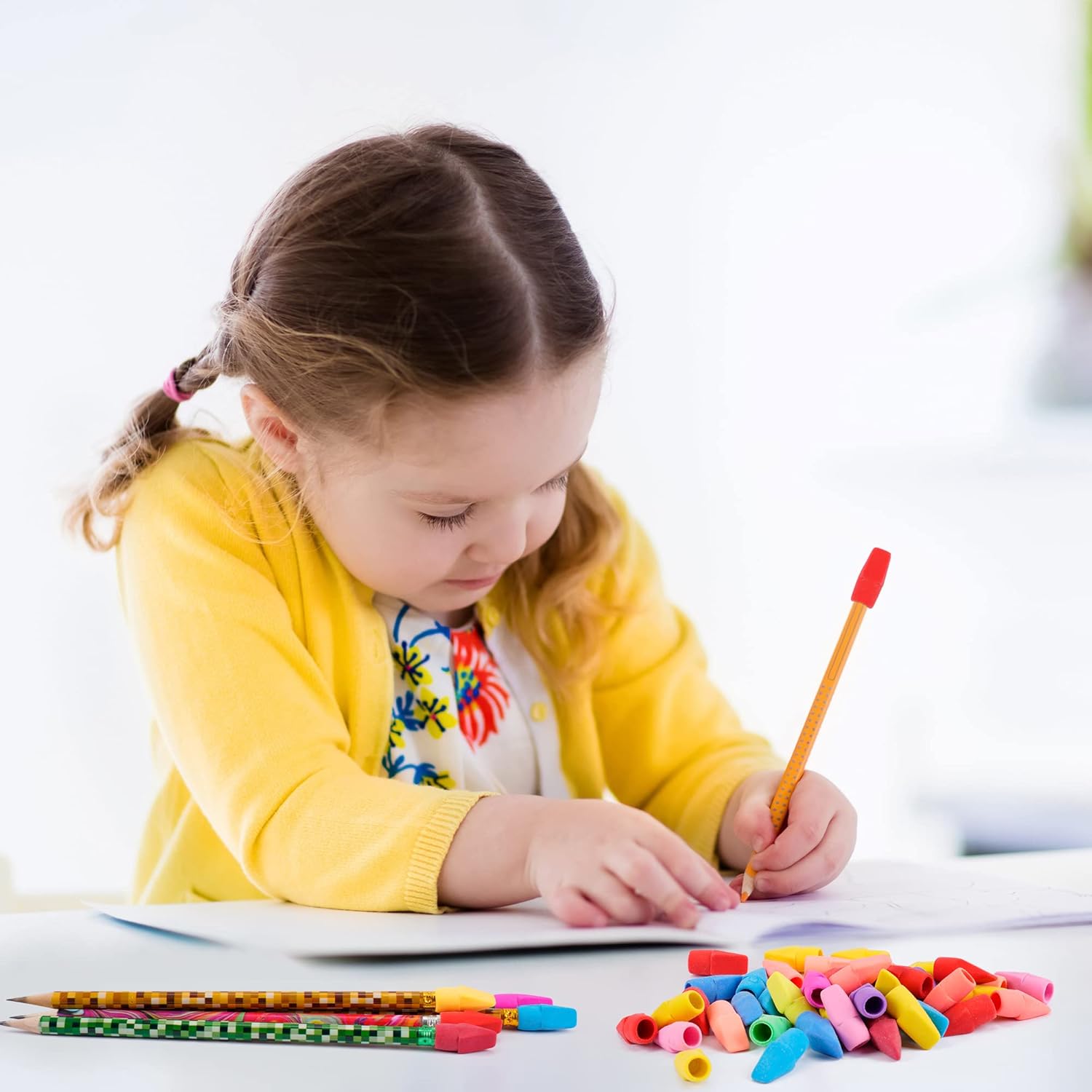 - Safety material:our pencil top erasers are made of PVC and latex,can also be the protective cap for pen or pencils,prevent tips from breaking,and keep your pages fresh and clean and fits all standard pencils