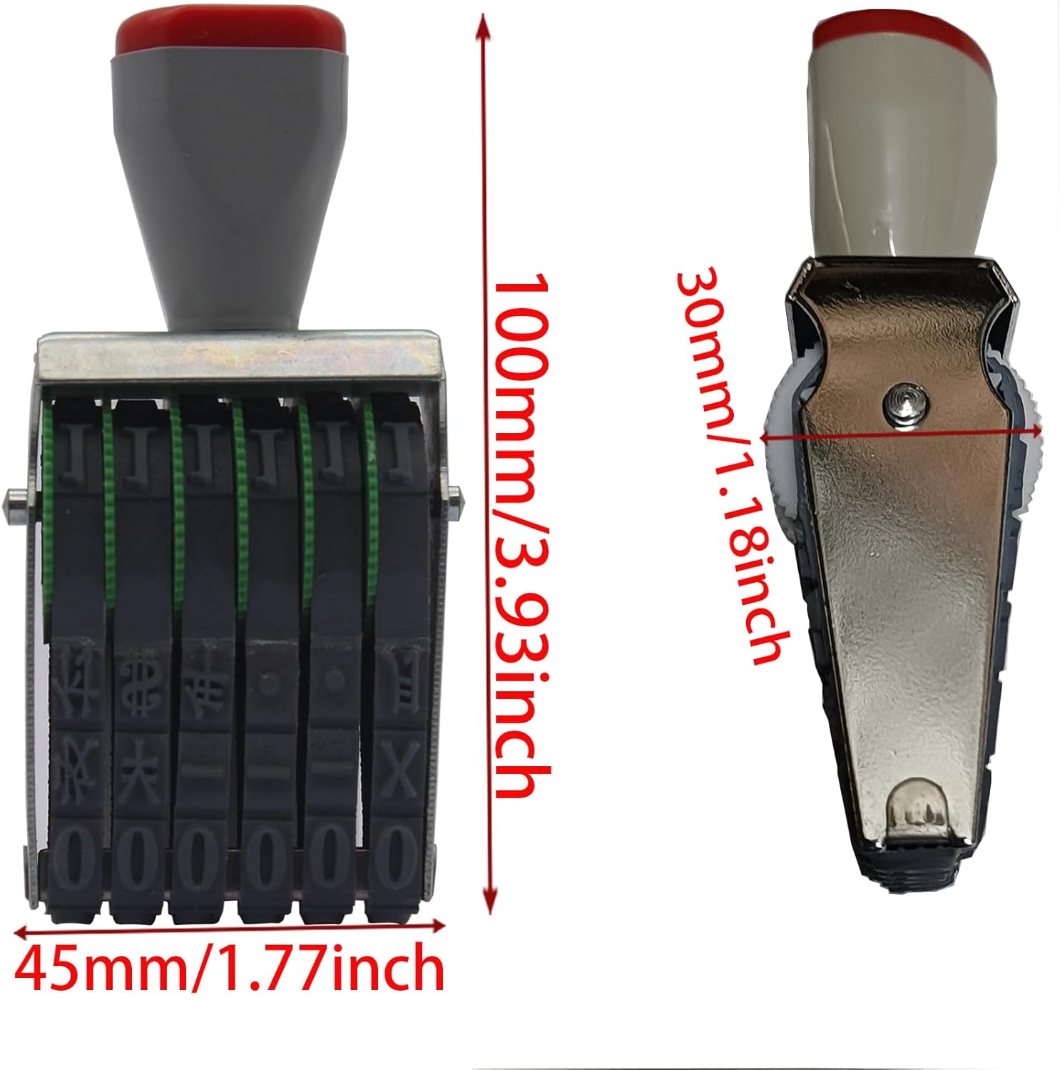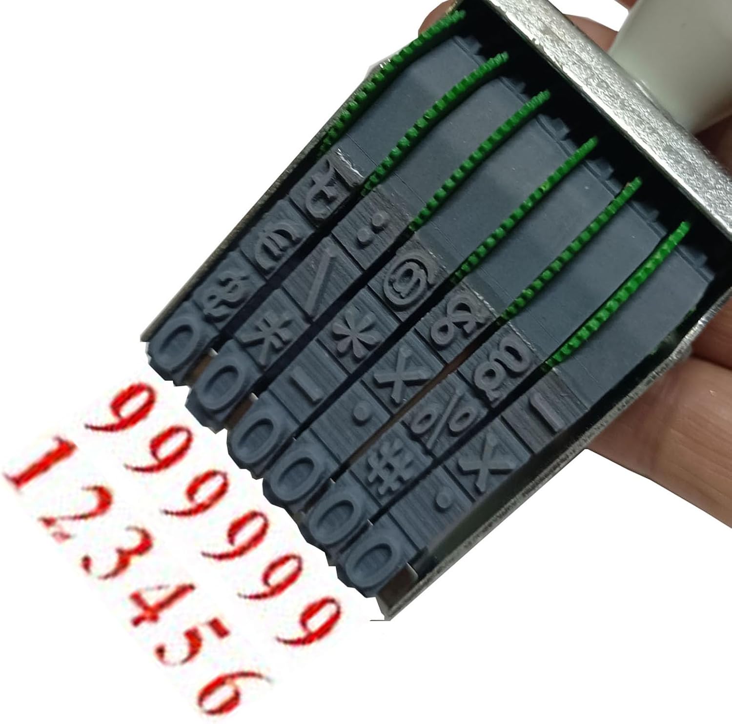 - 6 Adjustable Belts: Customize digits (0-9) and symbols (e.g., #, @, X) for flexible 40x7mm imprints.