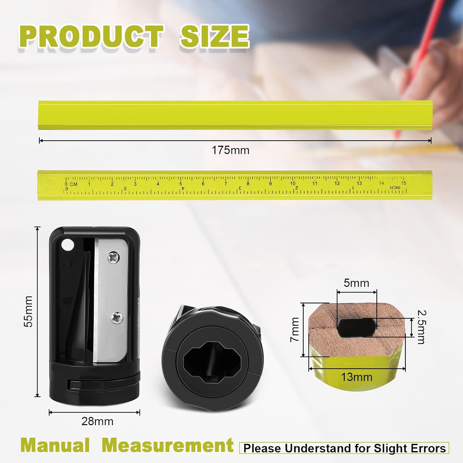 - The Packaging Includes: you will get 200 pieces of carpenter pencils with printed ruler on one side, and 2 pieces of carpenter pencil sharpeners to point the pencil, which can help you easily mark on the wood