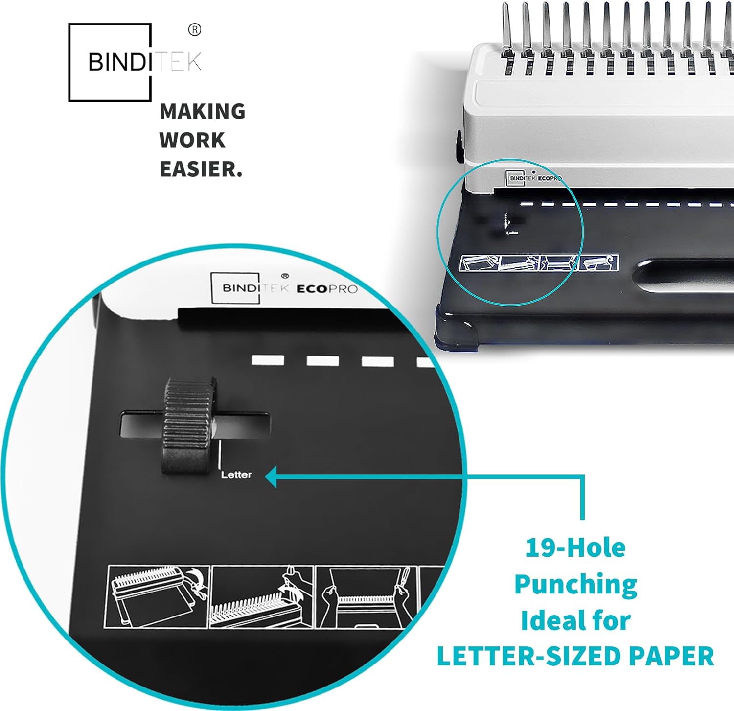 Binditek Binding Machine, 19-Hole, 450 Sheets, Comb Binder Machines with 100 PCS 1/2" Comb Spines, for Letter Size, A5 or Smaller Sizes