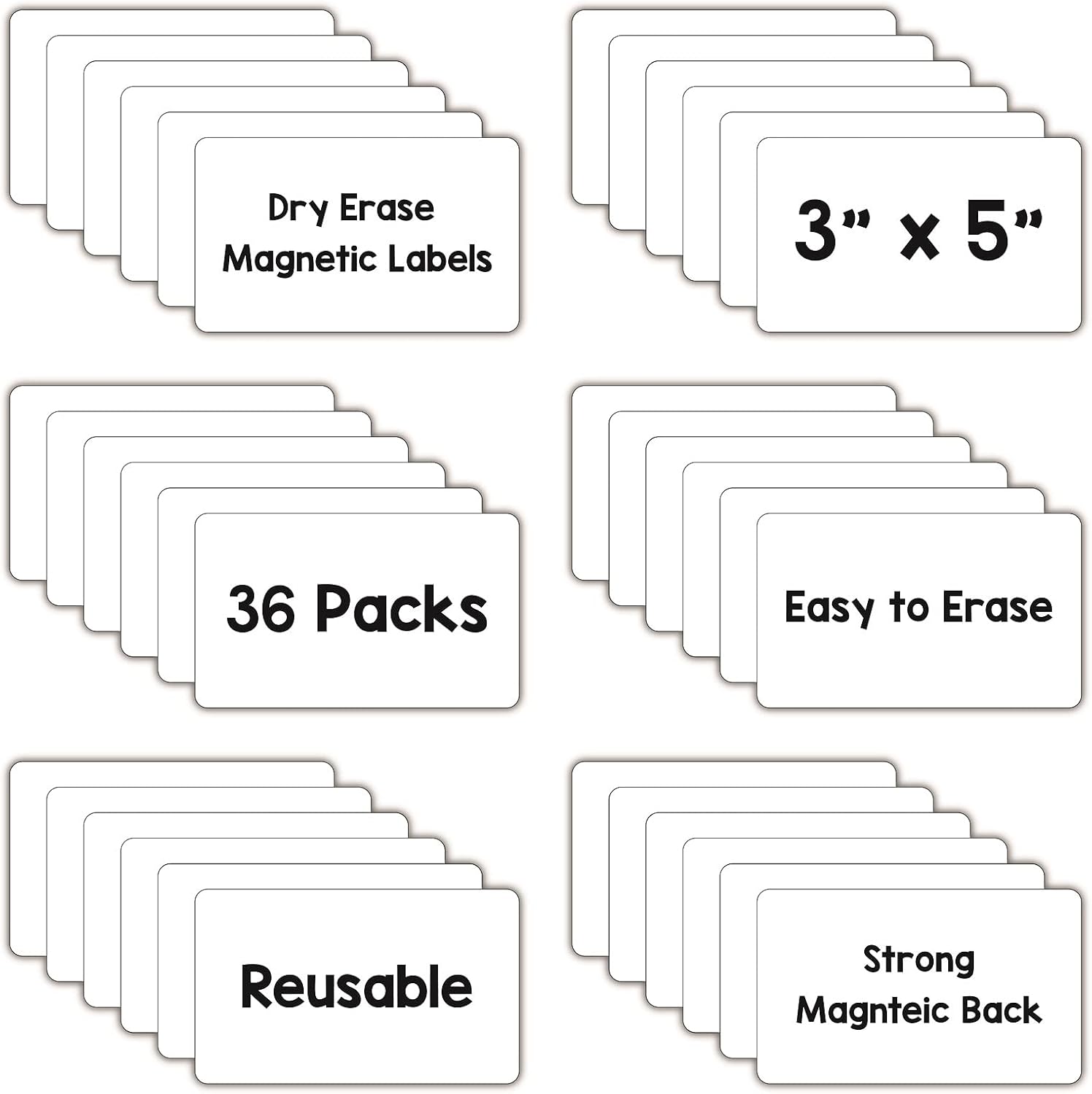 - Value Pack: This pack includes 36 PCS 3” x 5” dry erase magnets, the perfect solution for creating magnetic labels or instant writable noticeboards.
