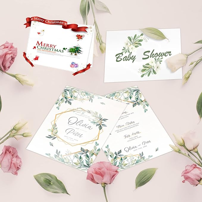 - Premium Quality: You can stamp this white shiny cardstock paper with a permanent ink, markers or watercolor; Let it dry completely and it should not smear; The reflective look makes anything you write or print on it look more luxurious