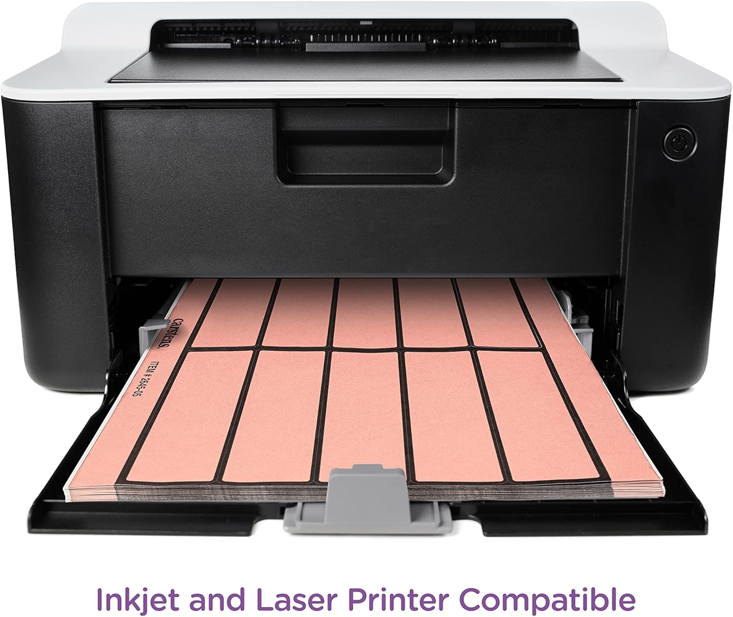 - These removable labels for binders can be sheet fed into inkjet and laser printers for printing directly on the label. They apply smoothly and peel off clean, no residue