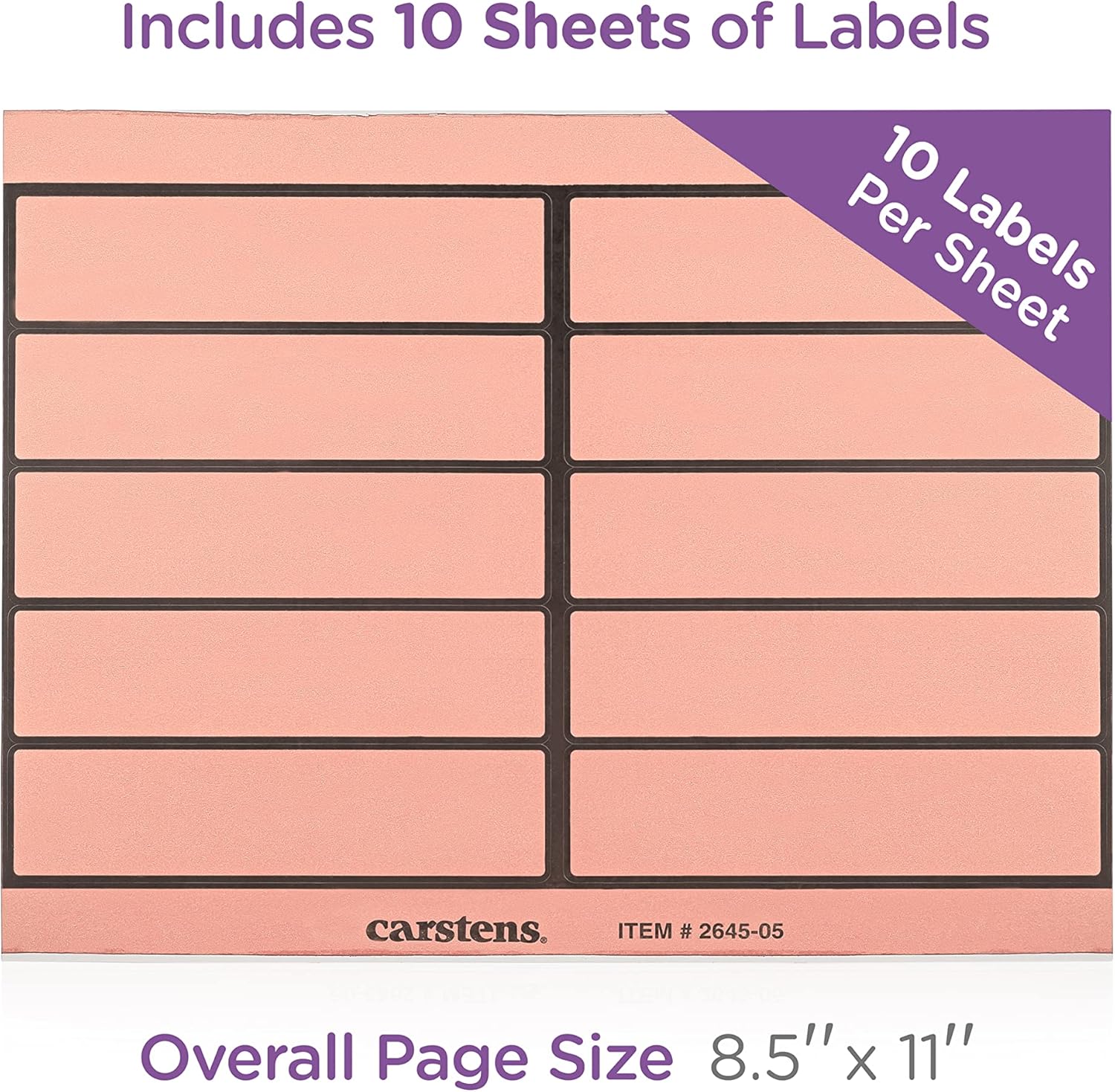 Carstens Adhesive Binder Labels, 5 3/8” x 1 3/8”, Stickers for 1.5” – 4” Ring Binder Spines, Inkjet and Laser Printer Compatible, Pink, 20 Sheets, 10 Labels Per Sheet