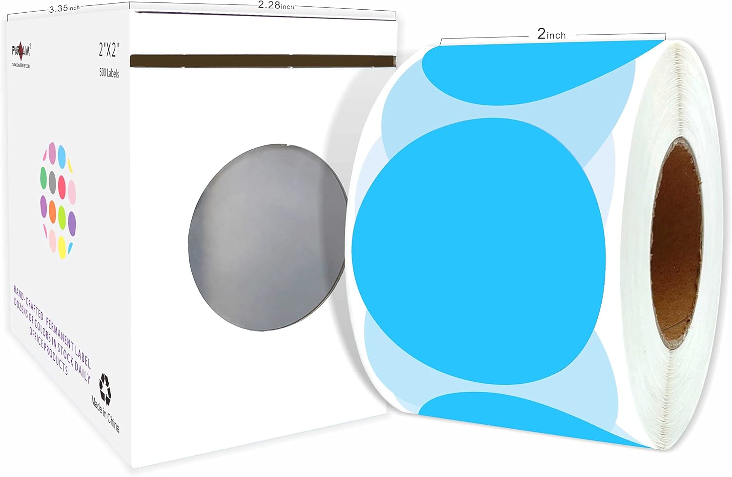 PARLAIM 2 Inch Dot Stickers, 500pcs Round Color Coding Circle Labels in Dispenser Box for Classroom Student Moving Box, Sky-Blue