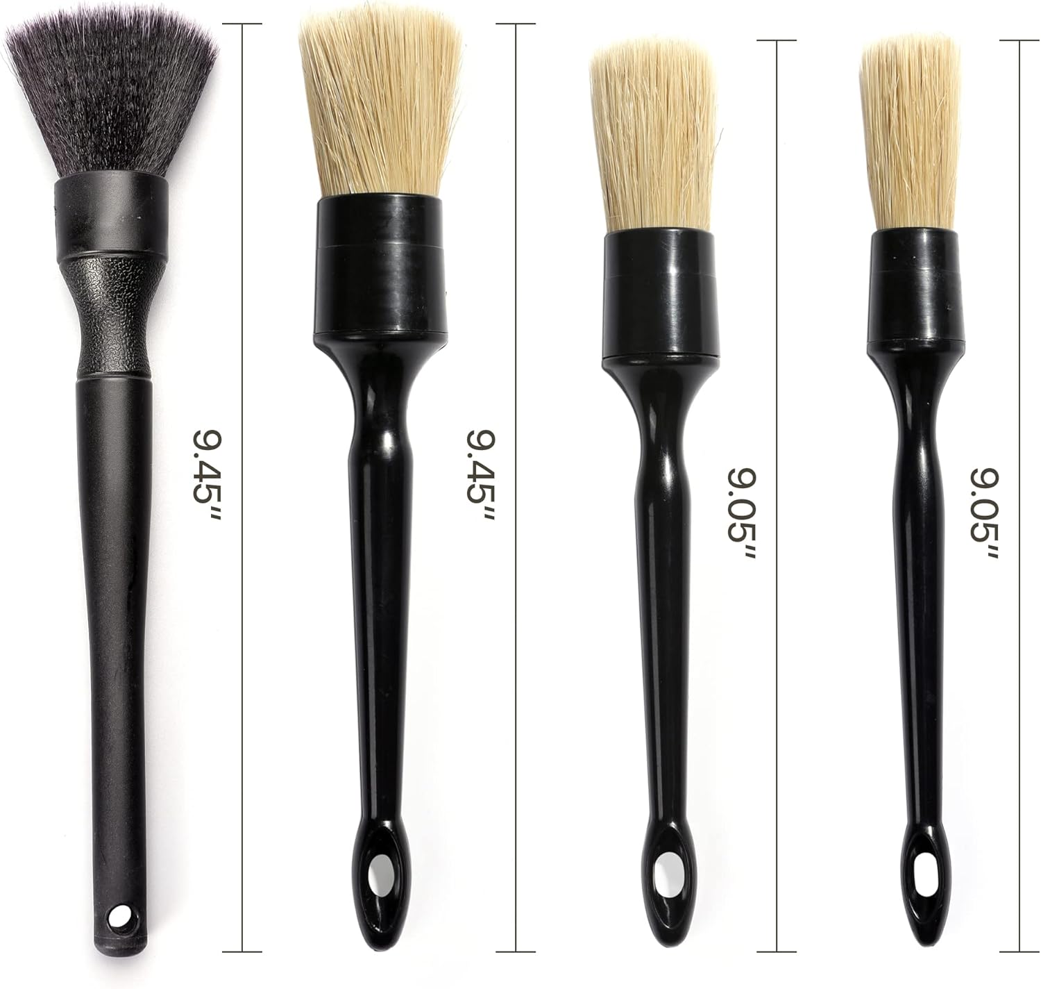 - The Best & Professional Level detailing brush set ever. You will get quality & quantity - 4 different brush size, 2 kinds of material namely boars hair and ultra-soft, just the ultimate automotive detailing brush so solid to tackle any detail