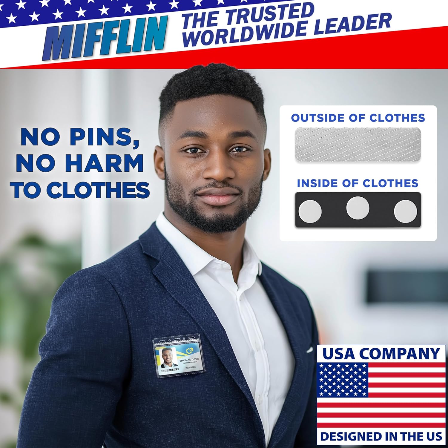 Mifflin-USA - Name Tag Magnets - 500 Pack, 1.75 x 0.5 Inches - Premium ID Badge Holder with 3 Extra Strong Neodymium Magnets