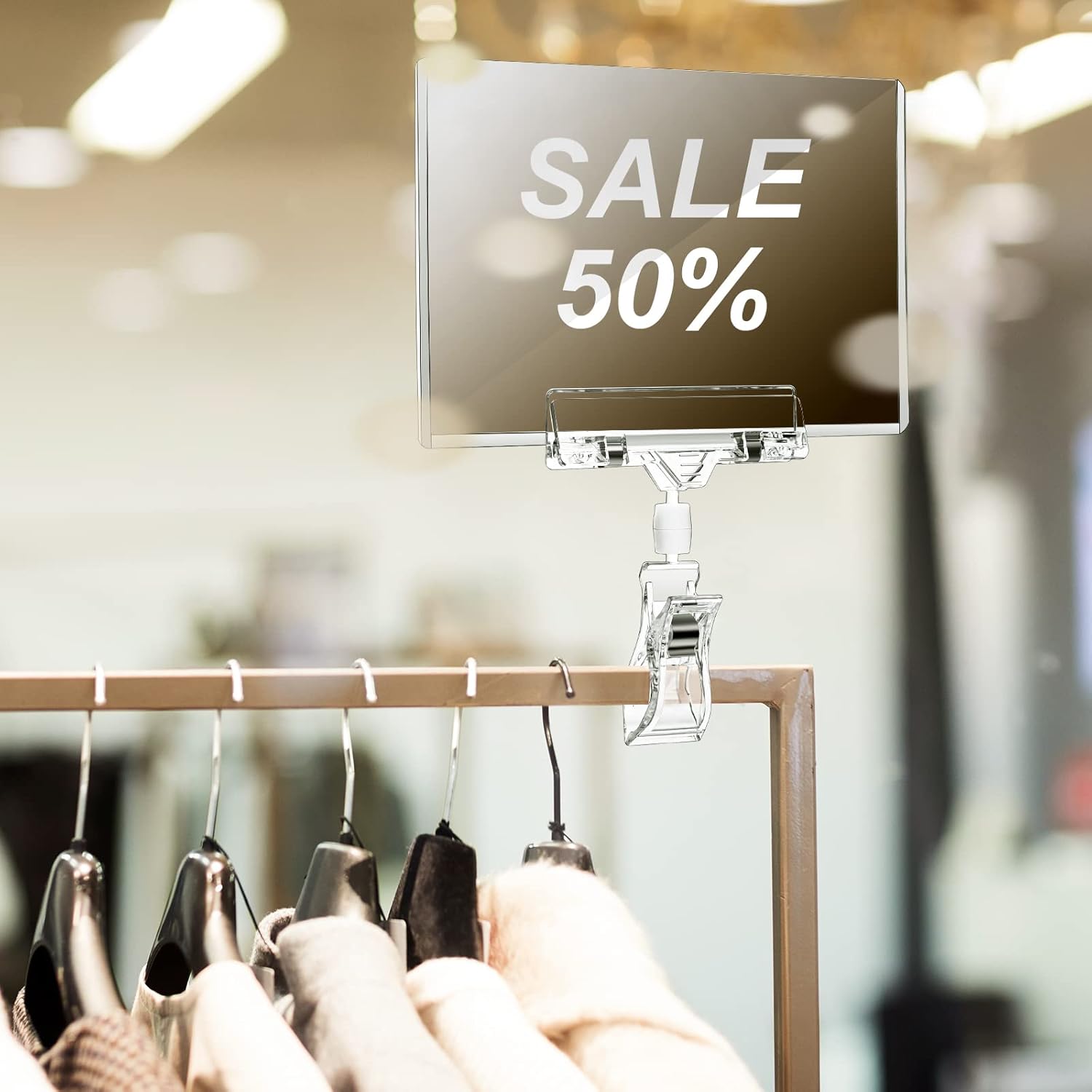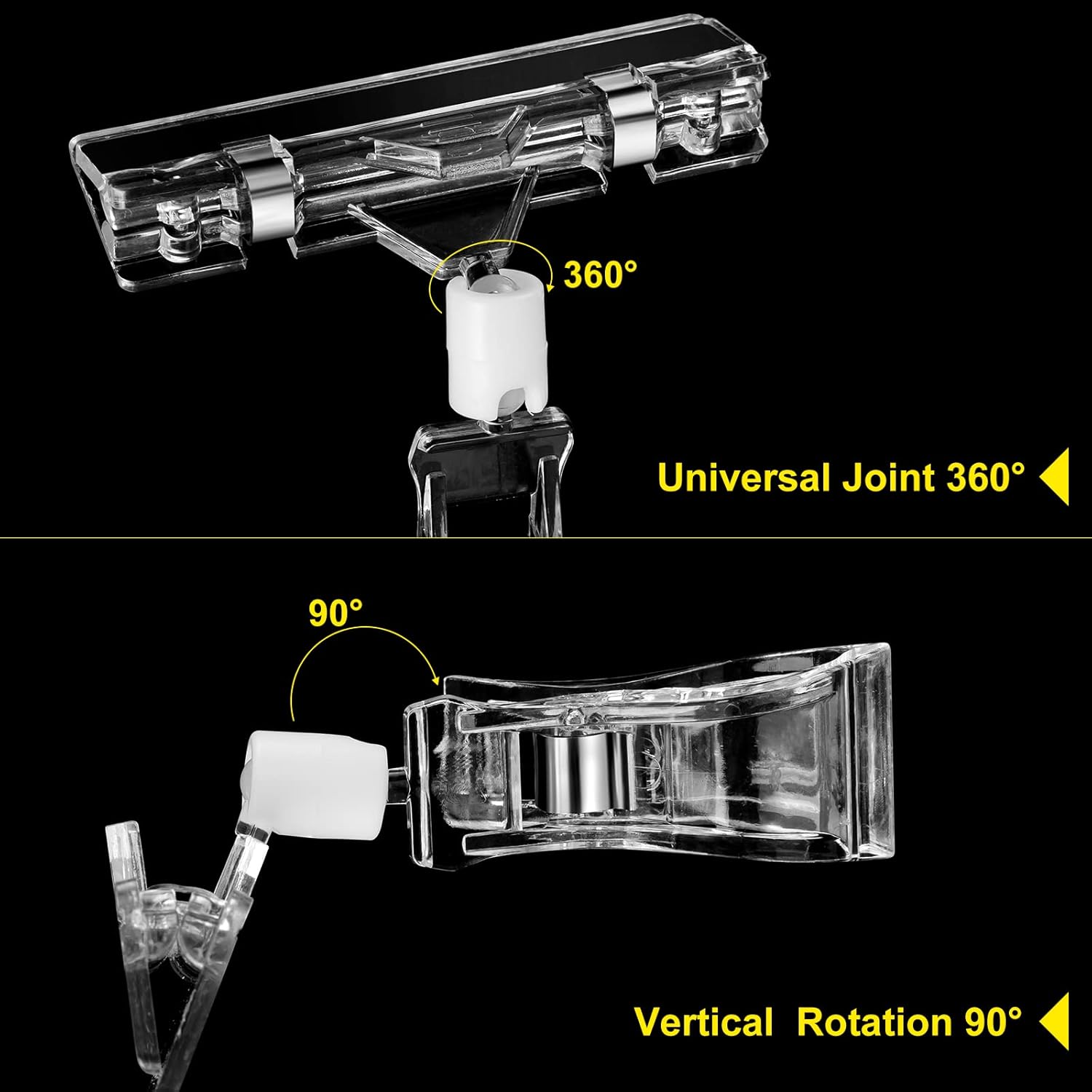 60 Pieces Rotating Clip on Sign Holder Plastic Merchandise Retail Display Sign Clip Holder with Clamp Pop Swivel Rack Card Sign Business Store Price Tags Sign Holder