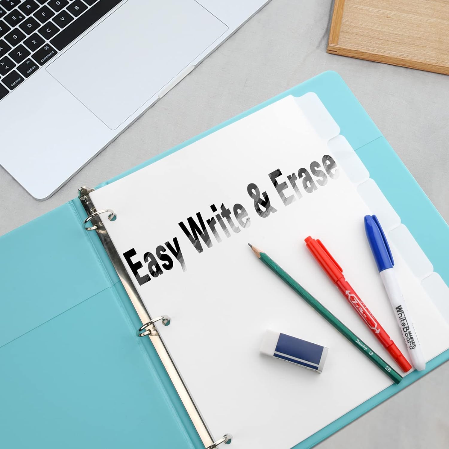 - Write directly on tab dividers for 3 ring binders with non-abrasive pen/ water marker or pencil and easily erase and rewrite for quick changes. Enjoy long-lasting subject 3 holes punch dividers that are tear-resistant and can be easily wiped clean with most non-abrasive household cleaners