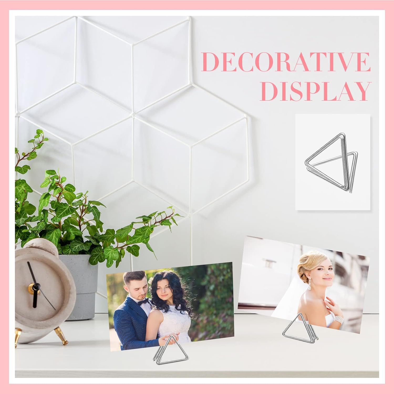 100 Pcs Triangle Shape Table Number Holders - Wedding & Party Mini Name Card Holders - Silver