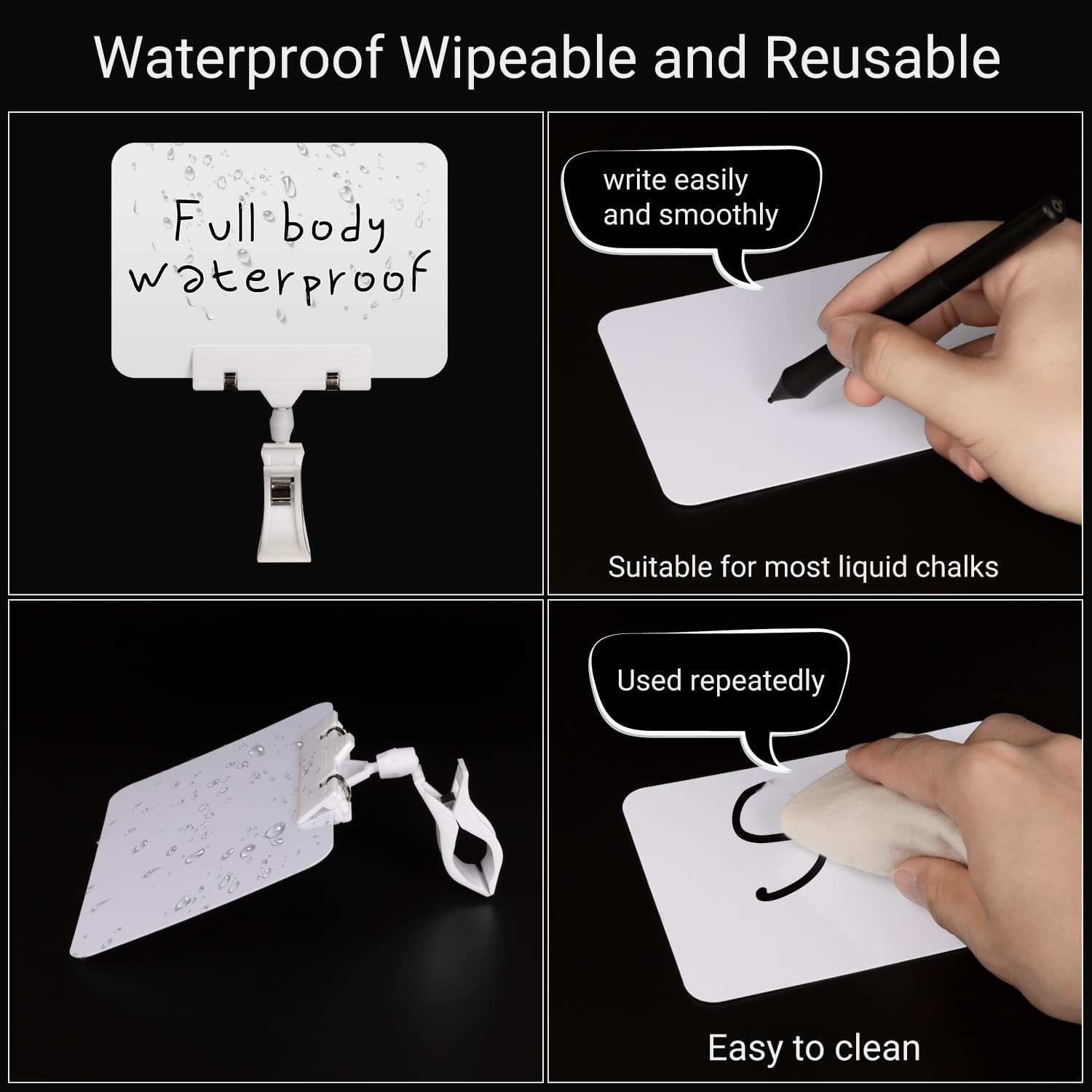 - WATERPROOF ERASABLE PRICE TAG: The retail sign holder stand easy to write with any type of liquid chalk markers, easy to erase with a sponge, reusable (can't write with chalk) and waterproof for outdoor use.