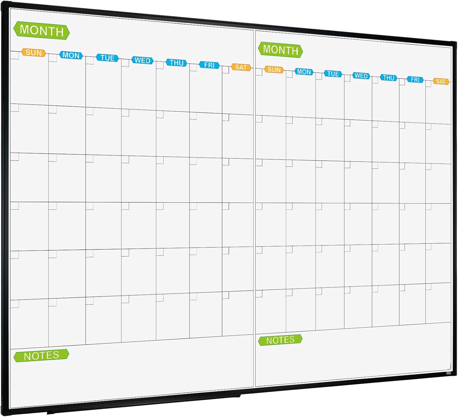 JILoffice Magnetic Dry Erase Calendar Whiteboard, 2 Month White Board Planner 48 X 36 Inch, Black Aluminum Frame Wall Mounted Board for Office Home and School