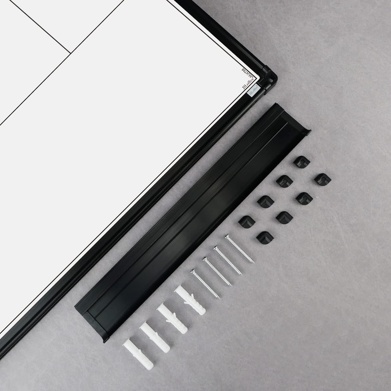 - ELEGANT BLACK ALUMINUM FRAME: Anti-Scratch satin black aluminum frame & detachable marker tray, Round nylon corners, Sturdy whiteboard structure perfect organizer for school home and office.