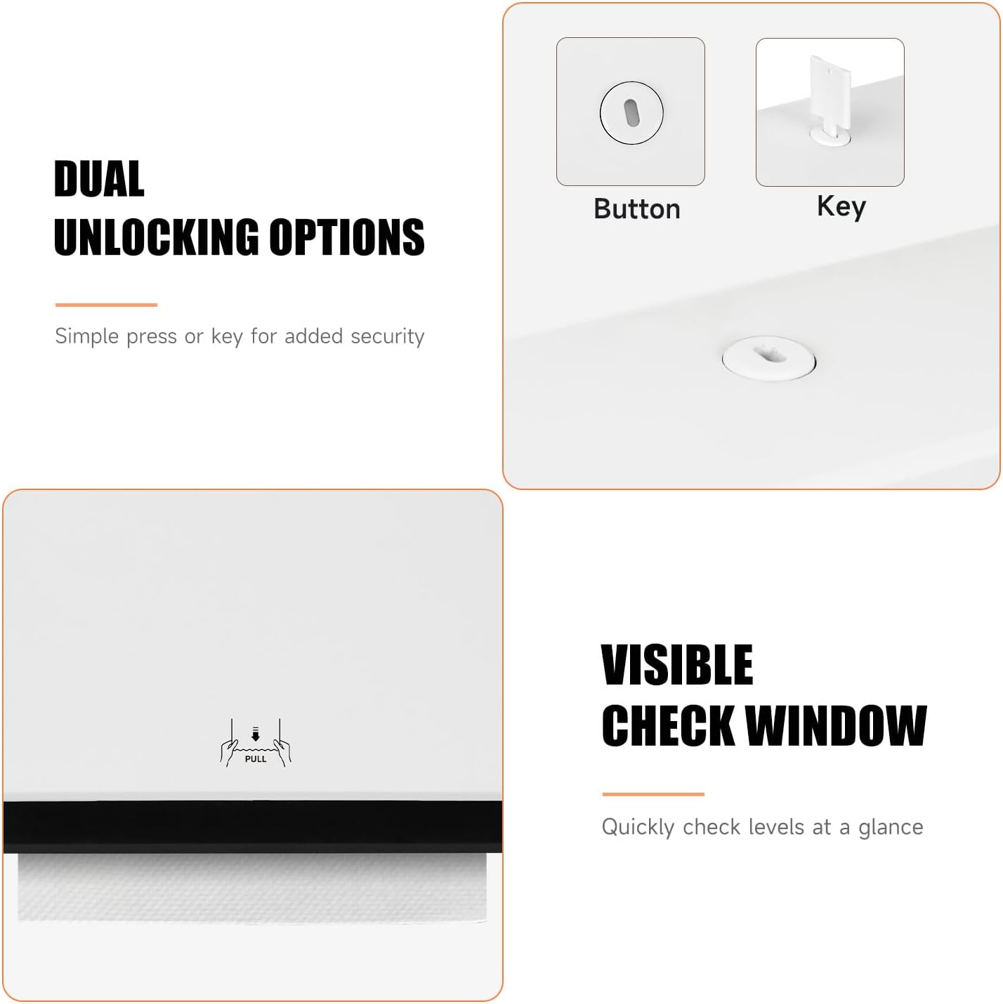 - 200-Sheet Capacity – Holds up to 200 multi-fold/tri-fold paper towels (within 3.1” width when folded), reducing refill frequency and saving time and effort