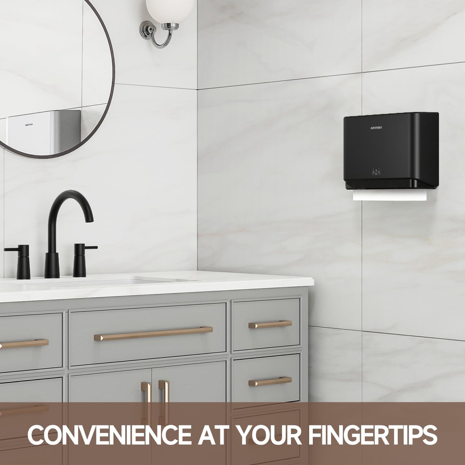 200-Sheet Wall-Mounted Paper Towel Dispenser, Fits Multi-Fold Towels up to 10x3.1 Inches, Perfect for Home & Business (Black)