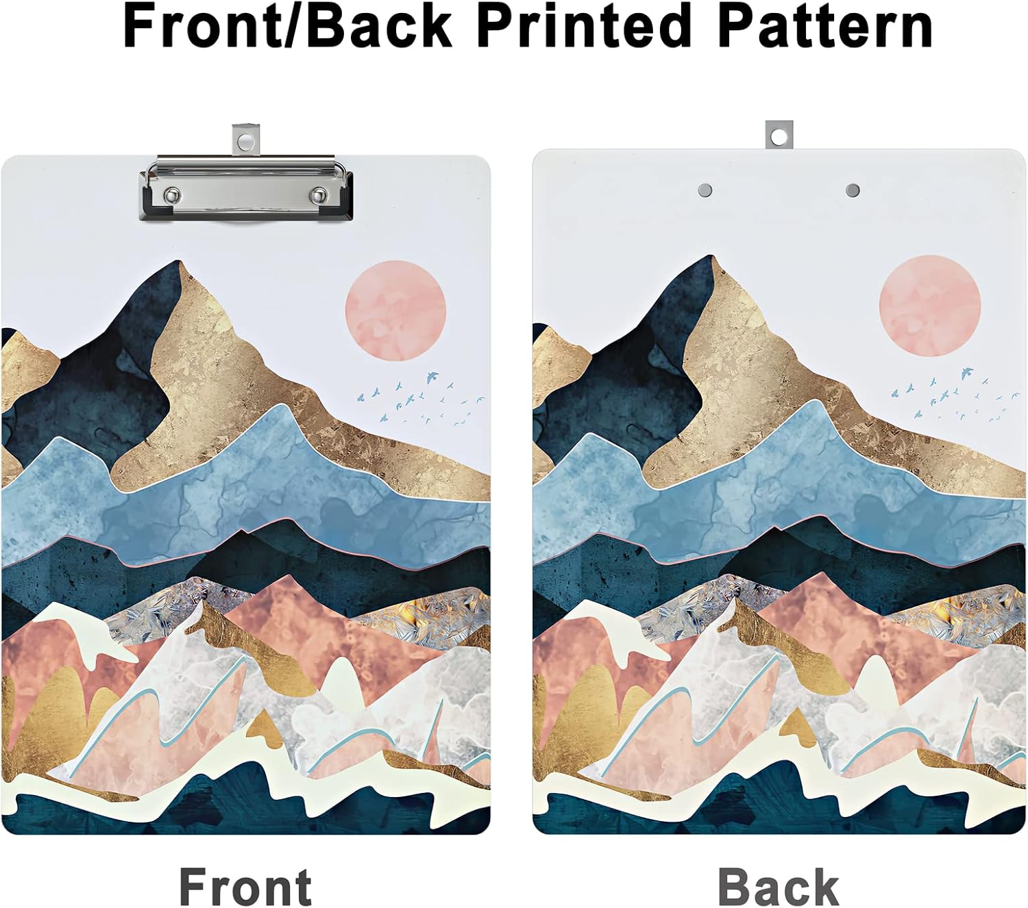 - 【Fashion Print Design】Beautiful abstract scenery design, sturdy 3mm clipboard with full color double-sided printing, add a little color to your desk! And when set it down randomly, it's easier to spot than a plain one!