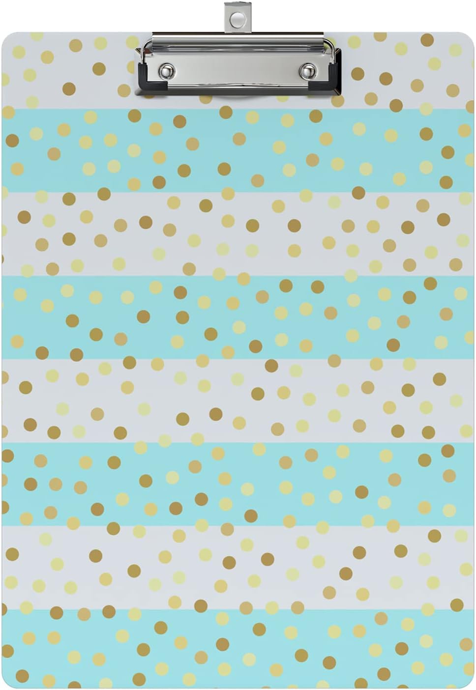 Cute Clipboard Wood Design Decorative A4 Letter Size Clipboards for Office, Standard Size 9" x 12.5" with Low Profile Metal Clip - Striped Spots