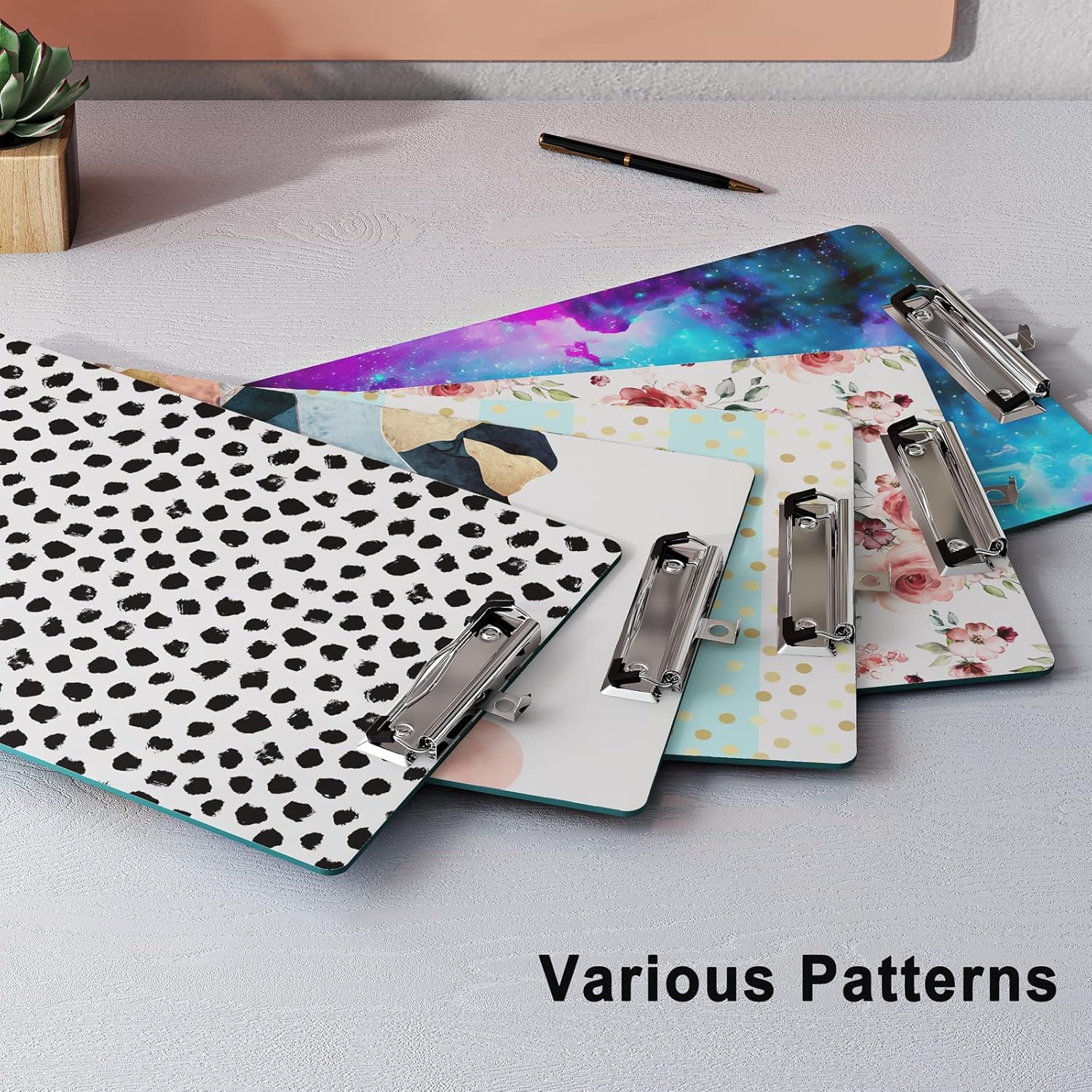 - 【High Quality Materials】The decorative clipboard with sturdy wood fibers base won’t flex, cracking, much lighter. Clip made of Steel nickel plated, can be used for many years. Fashion full color printing and gloss lamination, none of the colors were faded.