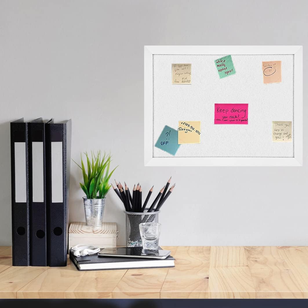 - 【Free Accessories】Package include 1 pack 17 x 23 inch bulletin board. It also comes with the thing you need to install and keep your ideas on the board: 2 screws, 2 hooks, and 5 white pins. Enough accessories for you to exercise your imagination
