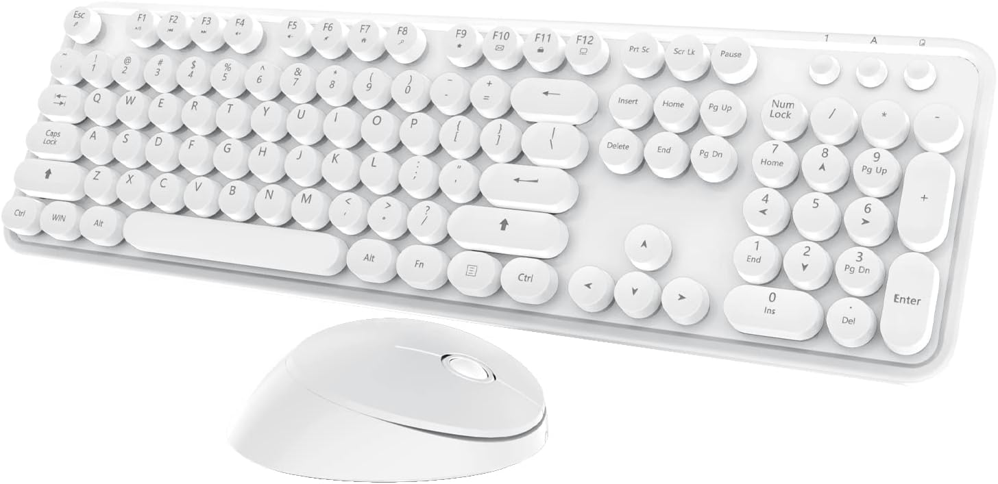 - RETRO ROUND KEYCAPS white color keyboard and mouse wireless with vintage typewriter-inspired rounded keycaps, gives you the most comfortable typing experience and adds some much needed spunk to your desk