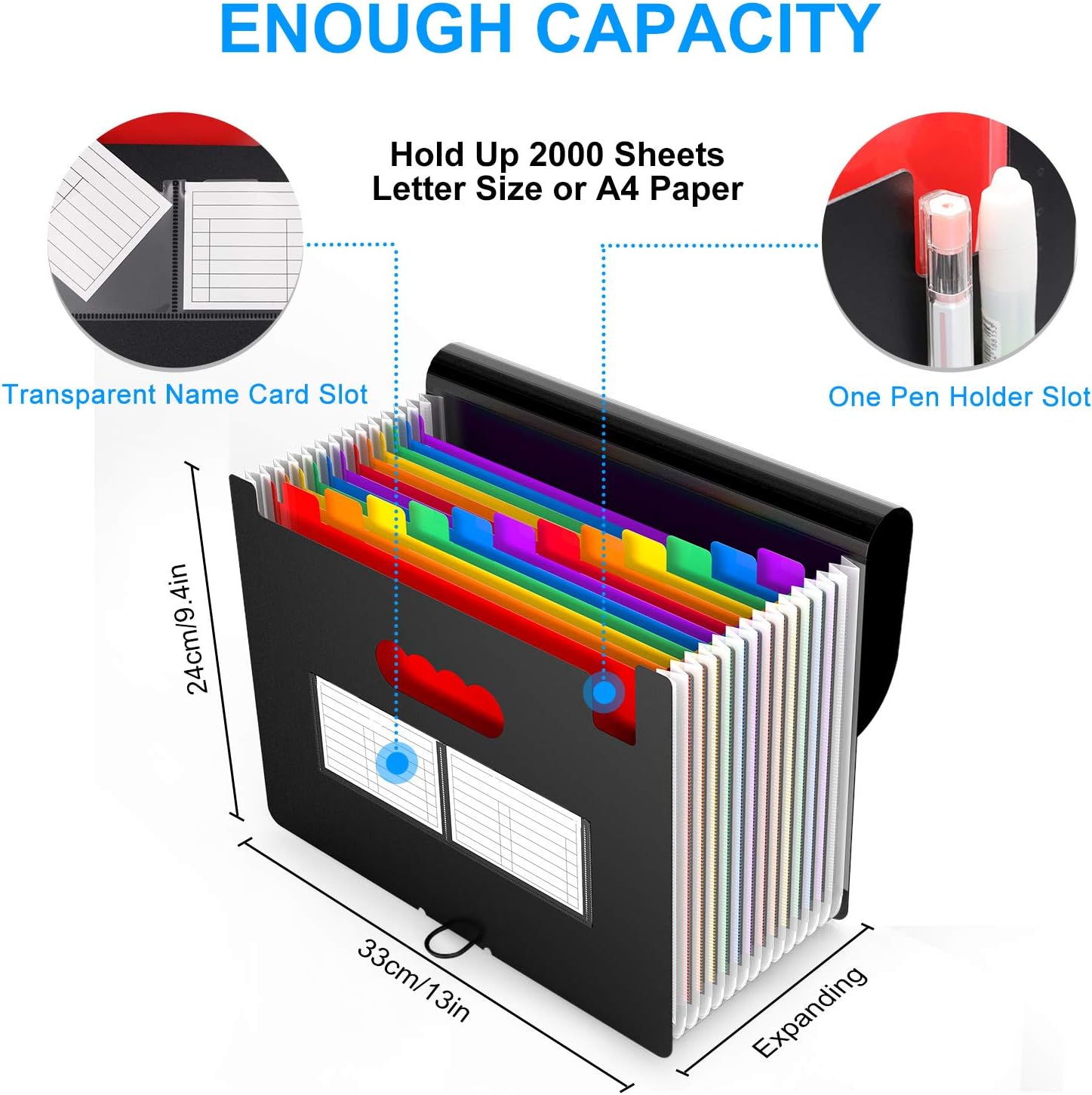 - 📂【Expandable & High Capacity】-The expanding file folder is the perfect solution for all your filing needs. You can easily categorize and store your documents, papers, receipts, coupons, and any other paperwork you may have. 12 pockets allow you to store more than 2000 sheets of paper documents.