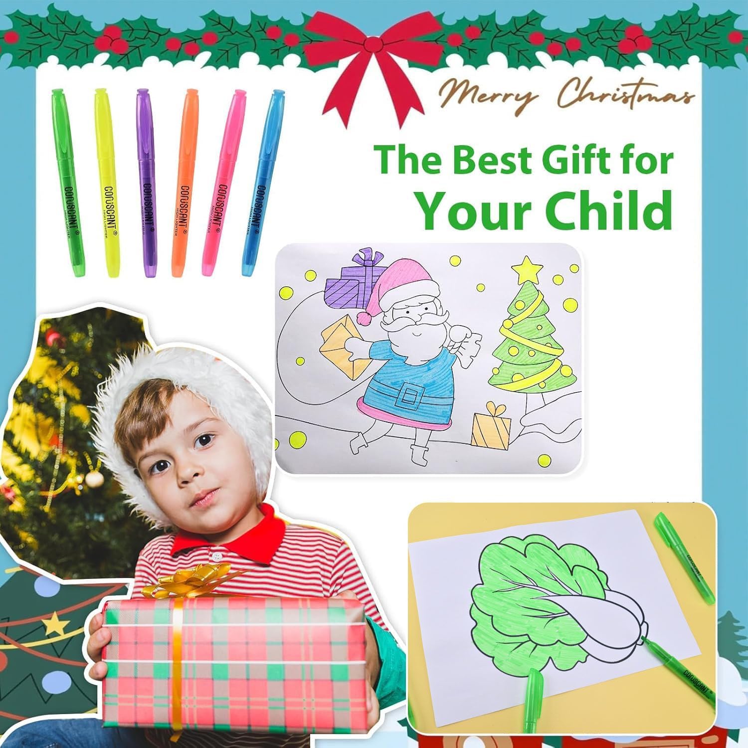 - STIMULATE YOUR CHILD'S CREATIVITY: Christmas coloured highlighters, the best gifts are not just toys that bring joy, but also tools that stimulate your child's creativity. The best gift for kids at Christmas.