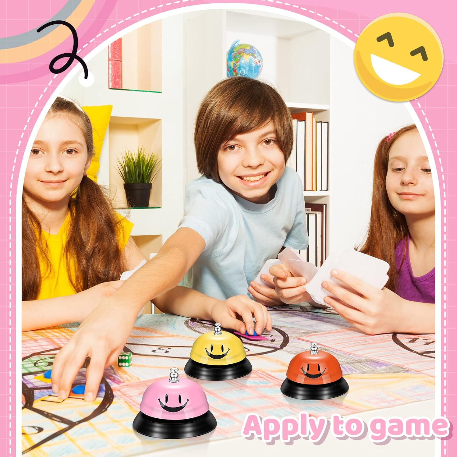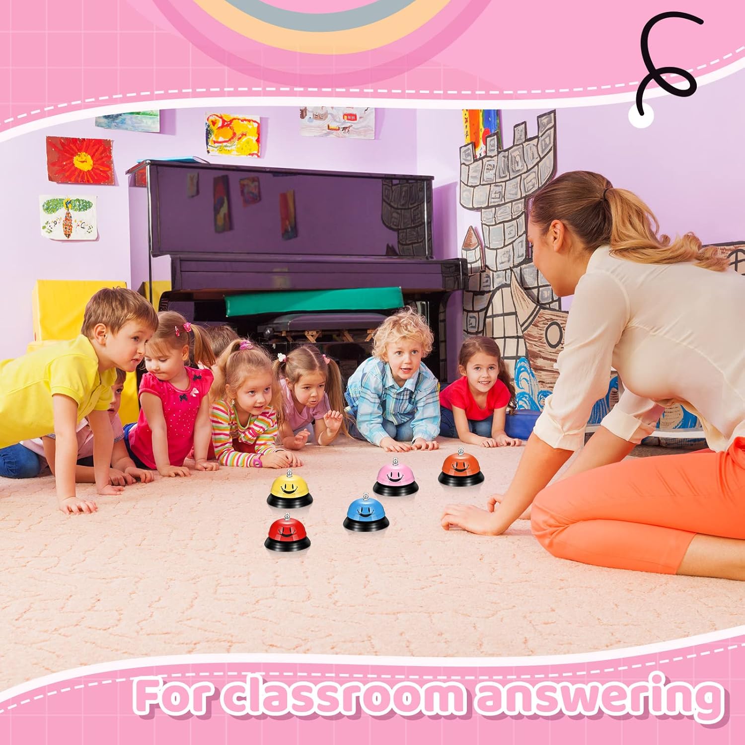 - Lovely Design: classroom bell is featuring with colorful colors, designed with a smile design, which can bring eye catching attraction, good mood and smile service for users