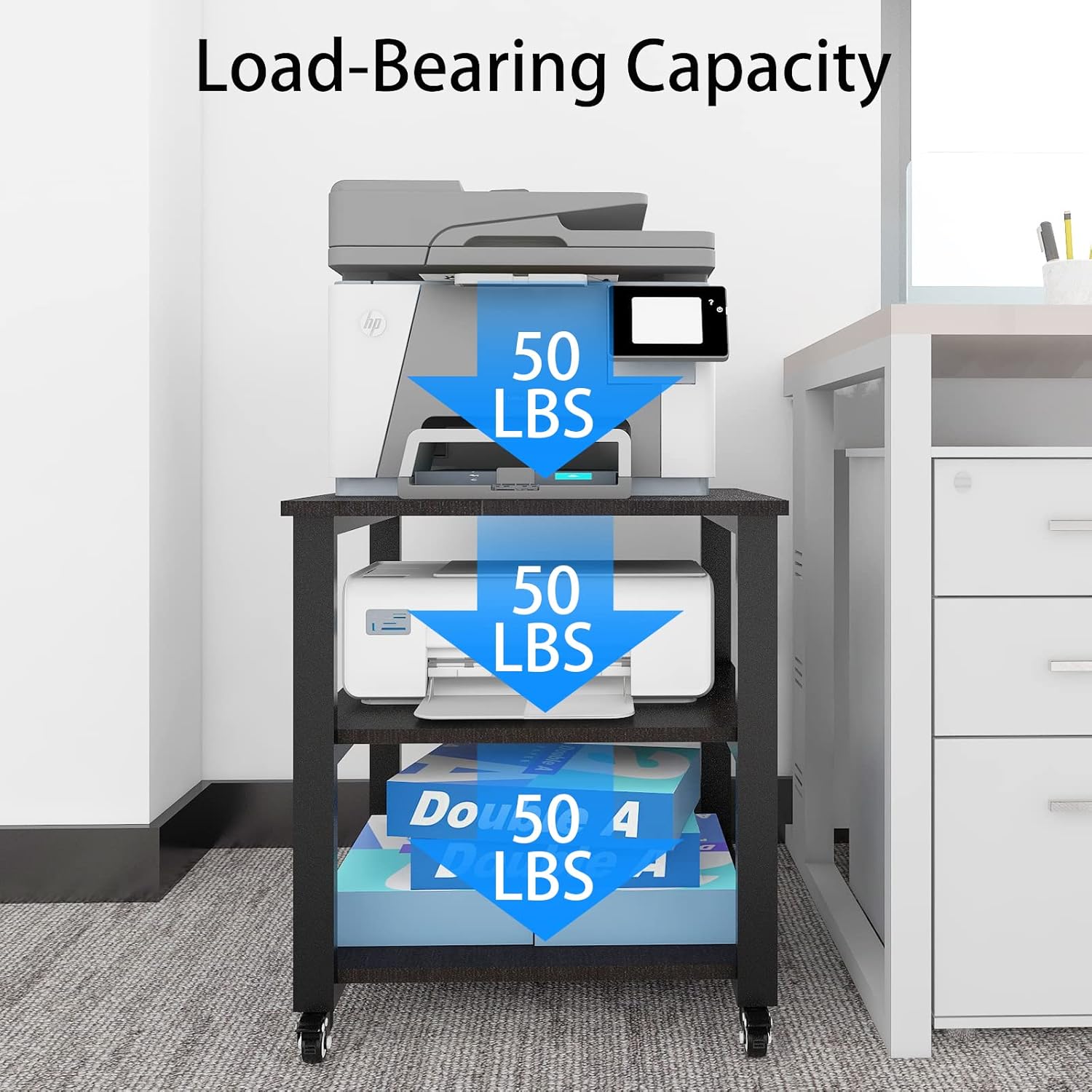 Natwind 3-Tier Laser Printer Cart,19.7''x19.7''x22.6'' Large Machine Stand,Heavy Duty Rolling Table with Storage,Floor-Standing Rack on Wheels,Paper File Organizer Shelf for Home Office (Black)