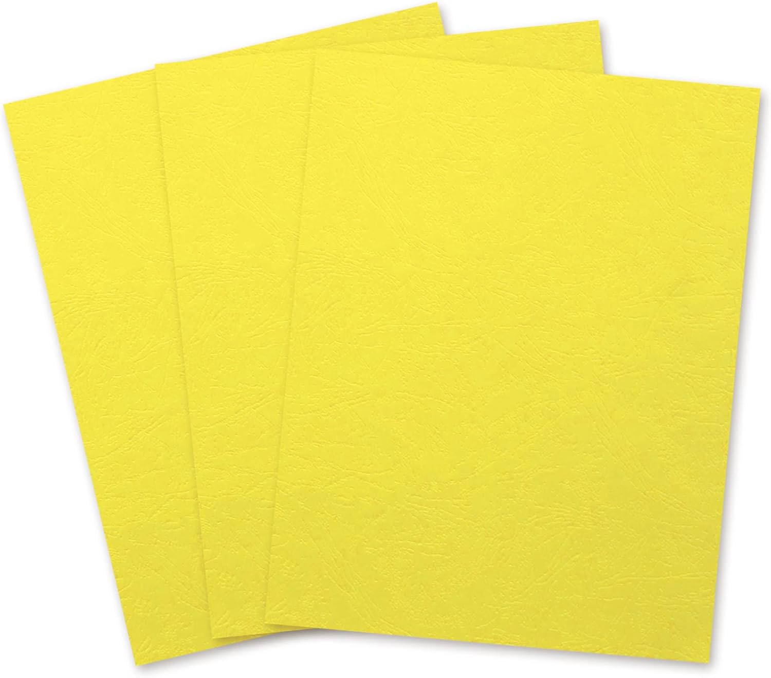 Binditek 100 Pack 12Mil Grain-Texture Paper Binding Presentation Covers, Letter Size, 230GSM, 85lb Un-Punched, 8-1/2 x 11 Inches, Yellow