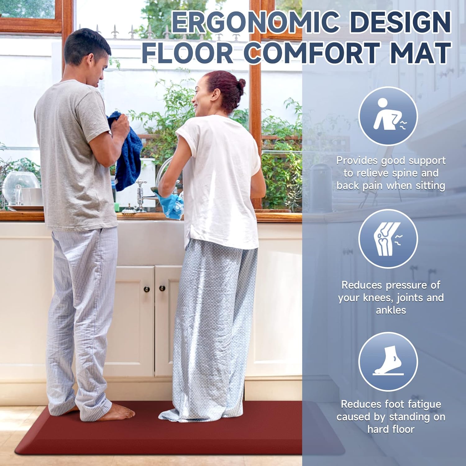 StepRite 4/5 Inch Thick Kitchen Mat Anti Fatigue Mat Kitchen Rugs Kitchen Decor Non-Slip, Stain Resistant, Waterproof Kitchen Mats Desk Mat for Kitchen, Office, Workshop, Red, 17'' x 39''