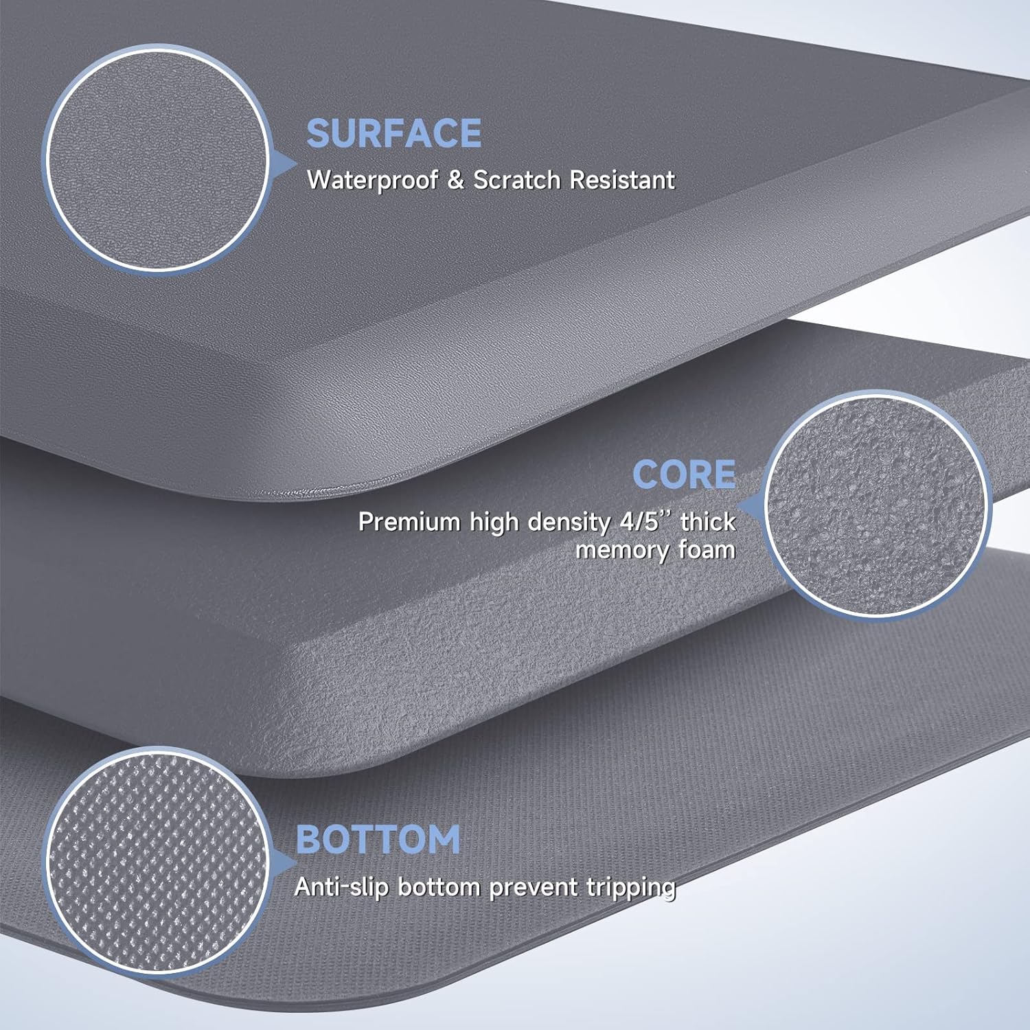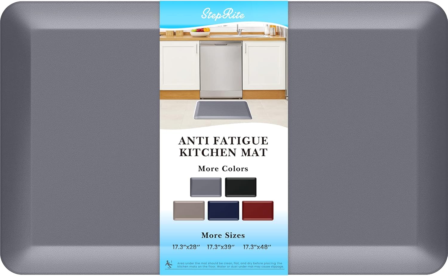StepRite 4/5 Inch Thick Kitchen Mat Anti Fatigue Mat Kitchen Rugs Kitchen Decor Non-Slip, Stain Resistant, Waterproof Kitchen Mats Desk Mat for Kitchen, Office, Workshop, Grey, 17'' x 28''