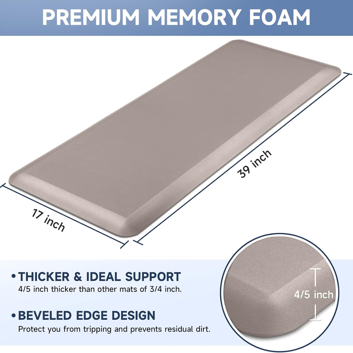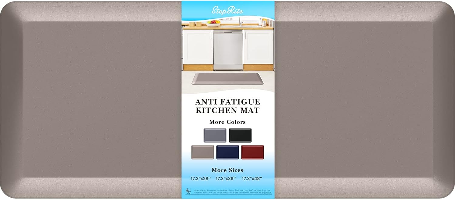 StepRite 4/5 Inch Thick Kitchen Mat Anti Fatigue Mat Kitchen Rugs Kitchen Decor Non-Slip, Stain Resistant, Waterproof Kitchen Mats Desk Mat for Kitchen, Office, Workshop, Khaki, 17'' x 39''
