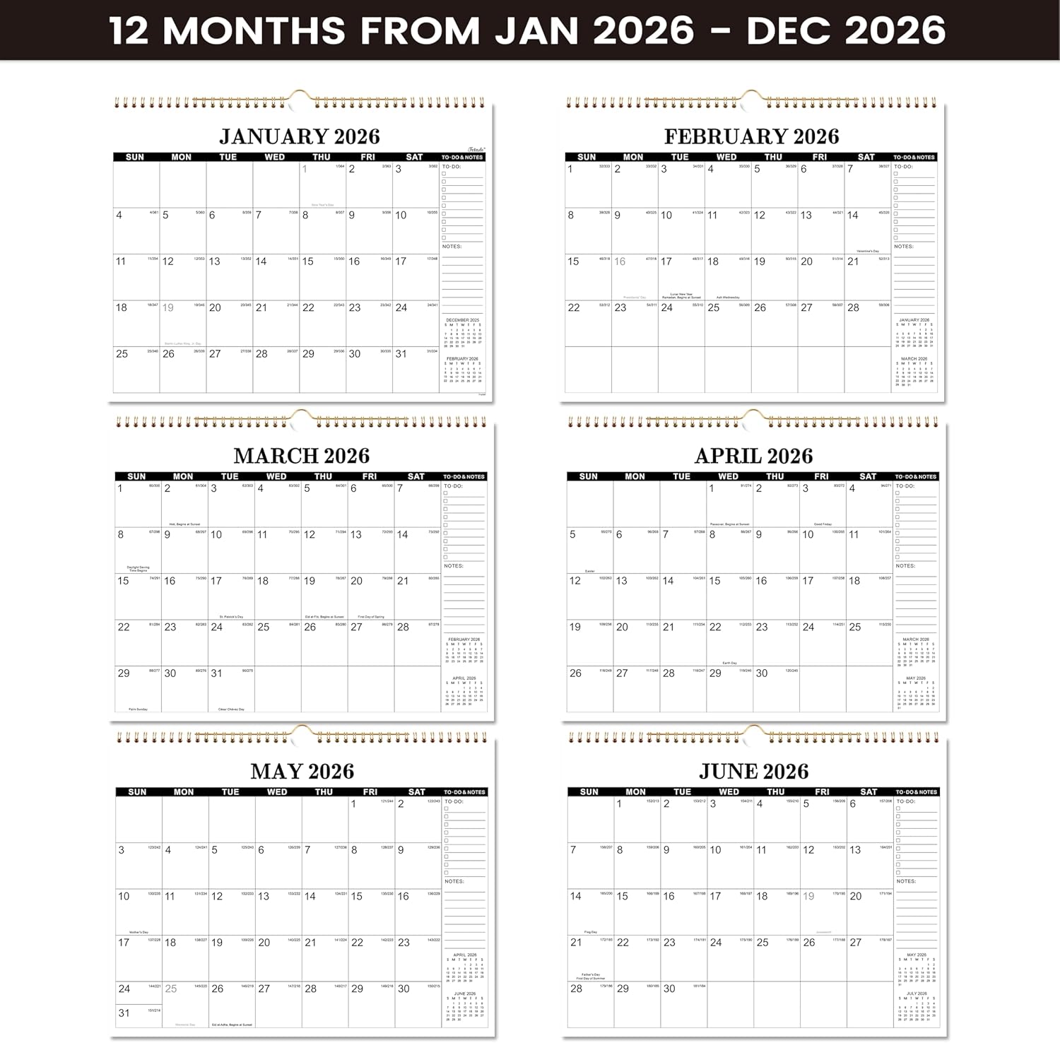 - 🖋 Sturdy Wire Binding - Calendar 2026 have sturdy twin-wire binding for turning pages easily and hanging hook for hanging calendar flexibly. The hard back cover can well protect the 2026 calendar.