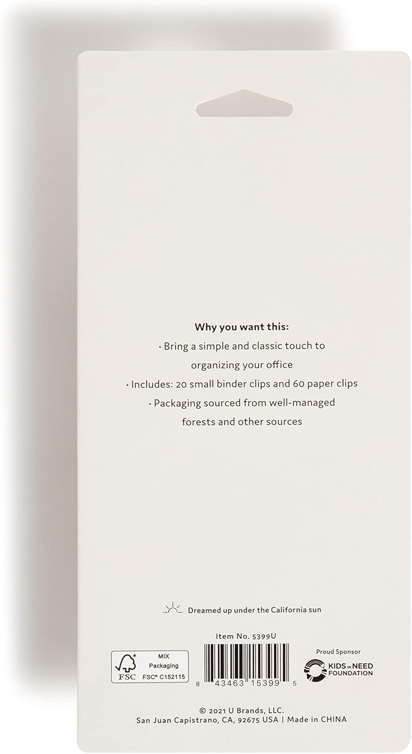 U Brands Classic Clips Set, Office Supplies, Black and White with Gold, Office Supplies, Paper and Binder Clips, 80 Count