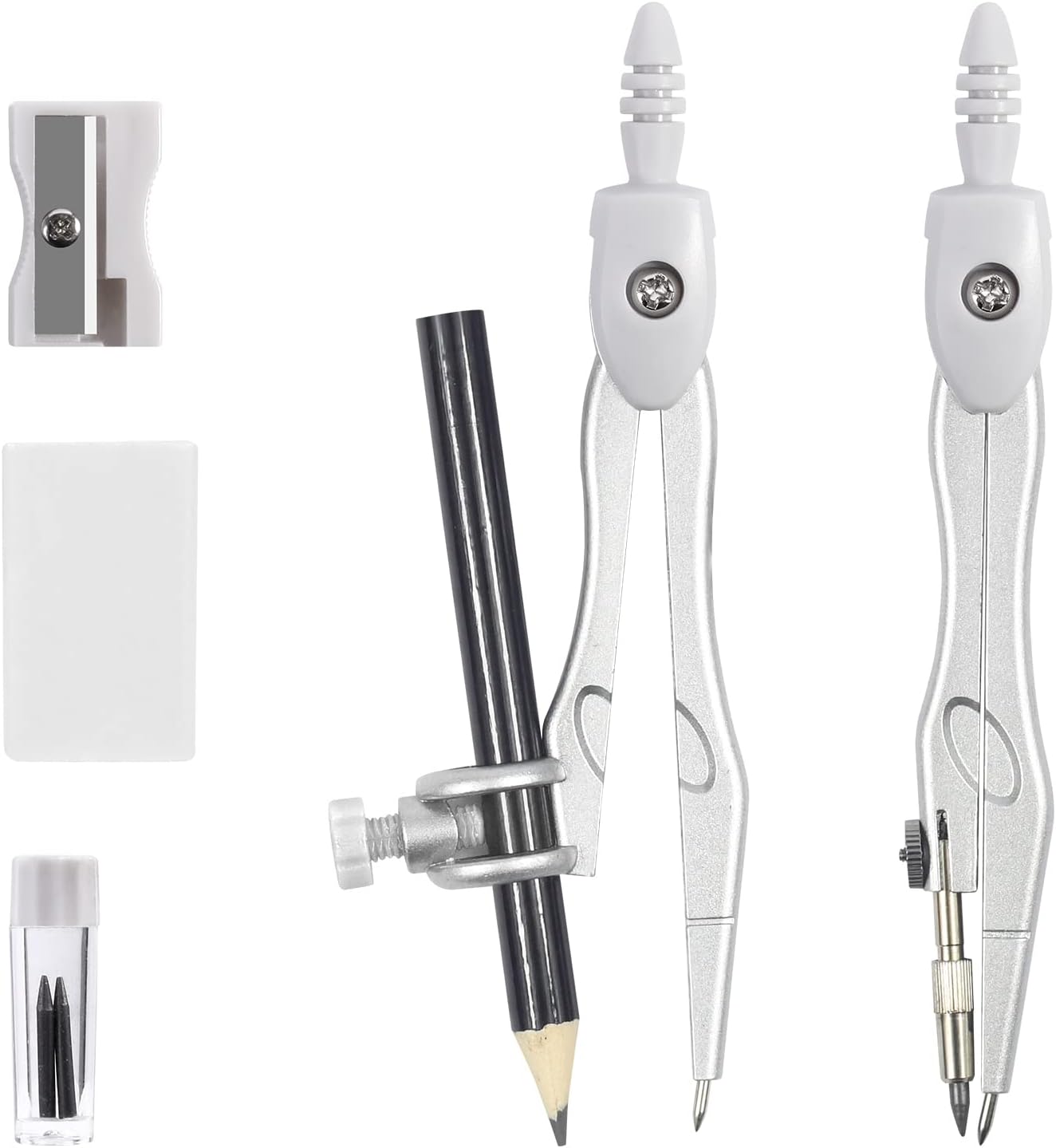 - A Practical Compass Geometry Set:Metal compasses will not bend, Ergonomically designed compass head is comfortable to hold, Universal Holder Compass work with any standard sized pencil or pen