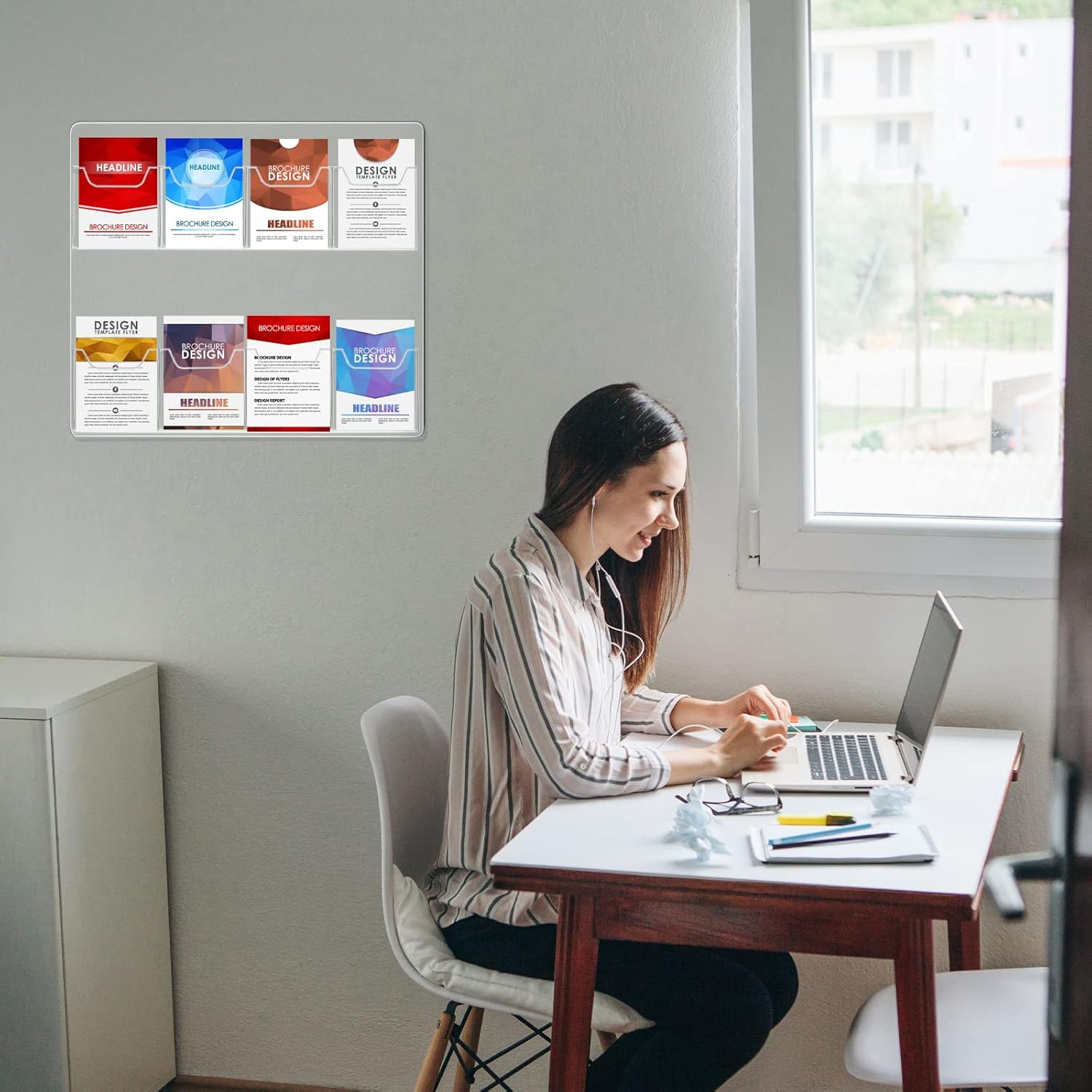 Eersida 2 Pack Acrylic Brochure Pamphlet Holder Wall Mount Clear Brochure Display Holder Plastic Trifold Flyer Rack Literature Storage Rack for Offices Waiting Room (8 Pockets, 15 x 17 Inch)