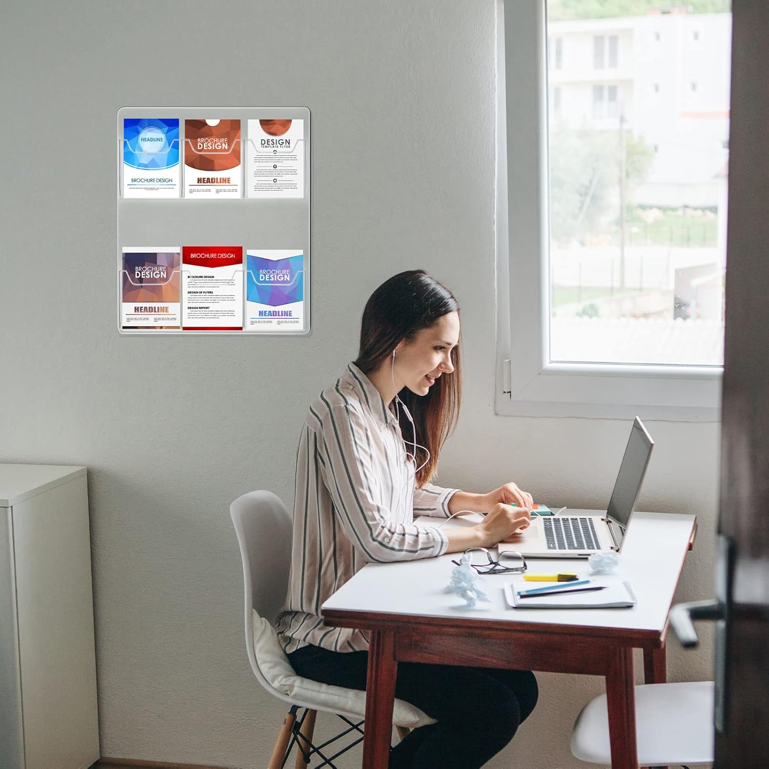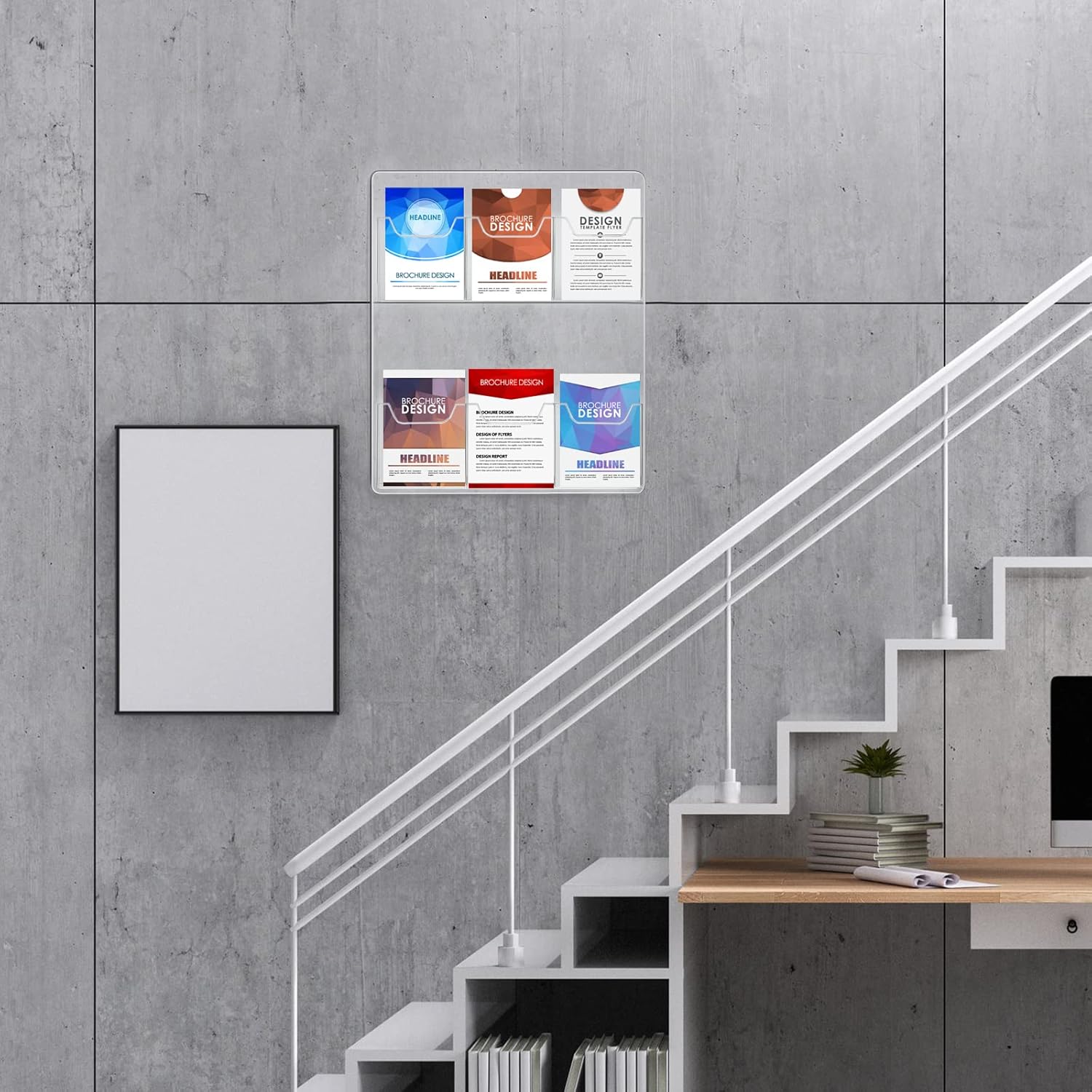 Eersida Acrylic Brochure Pamphlet Holder Brochure Display Stand Business Tri Fold Multi Slot Holder Rack Wall Mount Clear Pocket Space Saver for Flyer Literature Menu Advertise(6 Pockets)