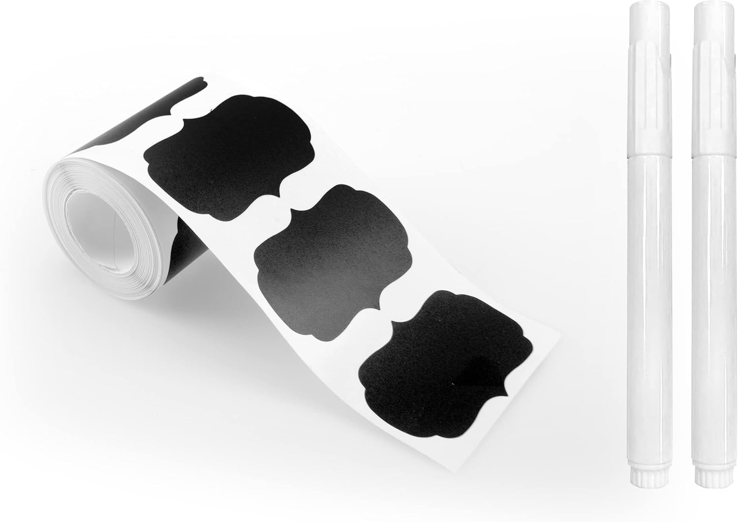 MUWOOB Chalkboard Labels, 120 Pcs Black Reusable Waterproof Labels Stickers with 2 White Chalk Markers, Kitchen Pantry Sticker Labels for Containers, Mason Jars, Condiments, Food Storage (Strange)