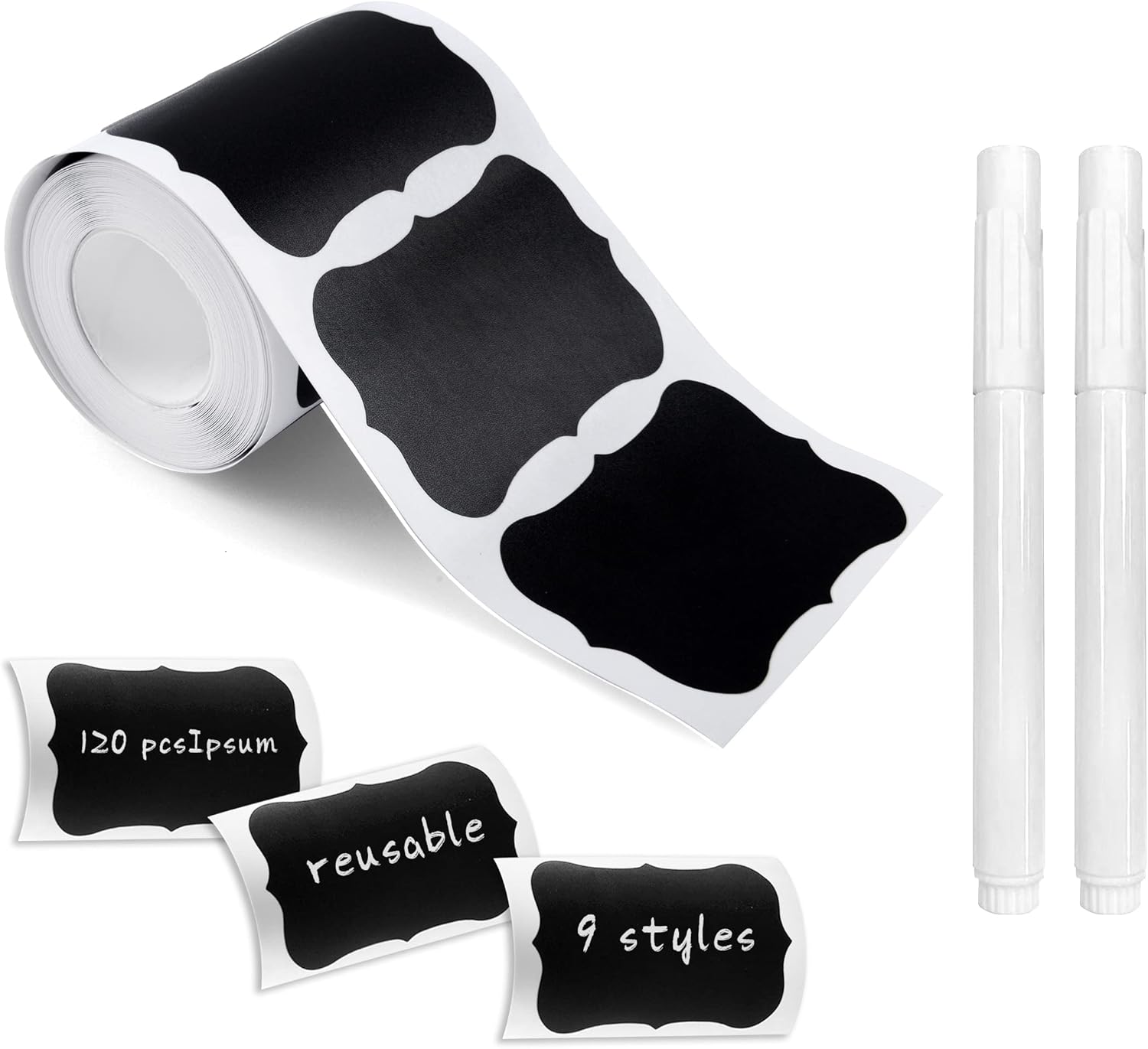 - Premium Chalkboard Stickers: Eraserable chalkboard stickers labels with the liquid white marker are reusable multiple times, chalk markers are long-lasting and quick drying, simply wipe clean with a wet wipe and rewrite new content before sticking to the container or jar.
